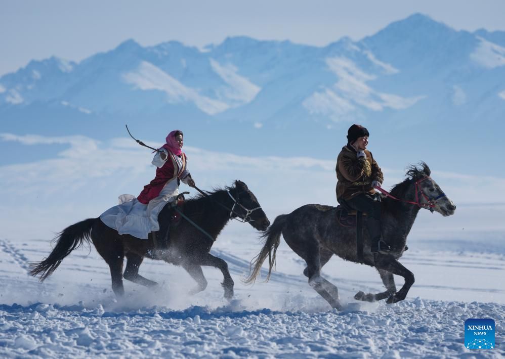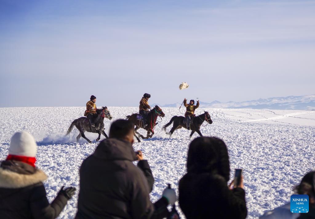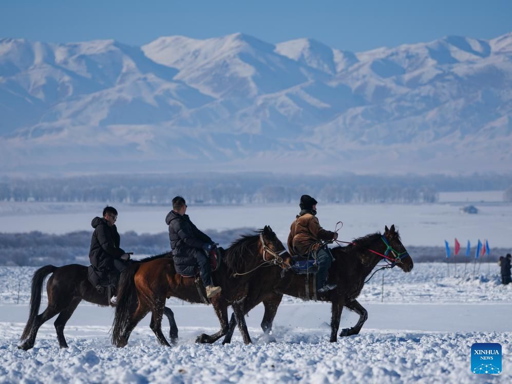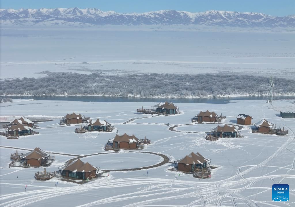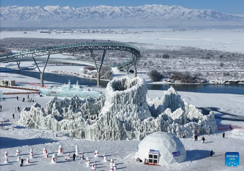 تُظهر صورة جوية التقطتها طائرة بدون طيار لأشخاصًا يستمتعون بوقتهم في منتزه جليدي ثلجي في مقاطعة تشاوسو، التابعة لمحافظة إيلي الكازاخية ذاتية الحكم، في منطقة شينجيانغ الويغورية ذاتية الحكم شمال غرب الصين. وقد طورت مقاطعة تشاوسو، مستفيدةً من مواردها الفريدة من الجليد والثلج في فصل الشتاء، خدمات سياحية شتوية متنوعة لجذب