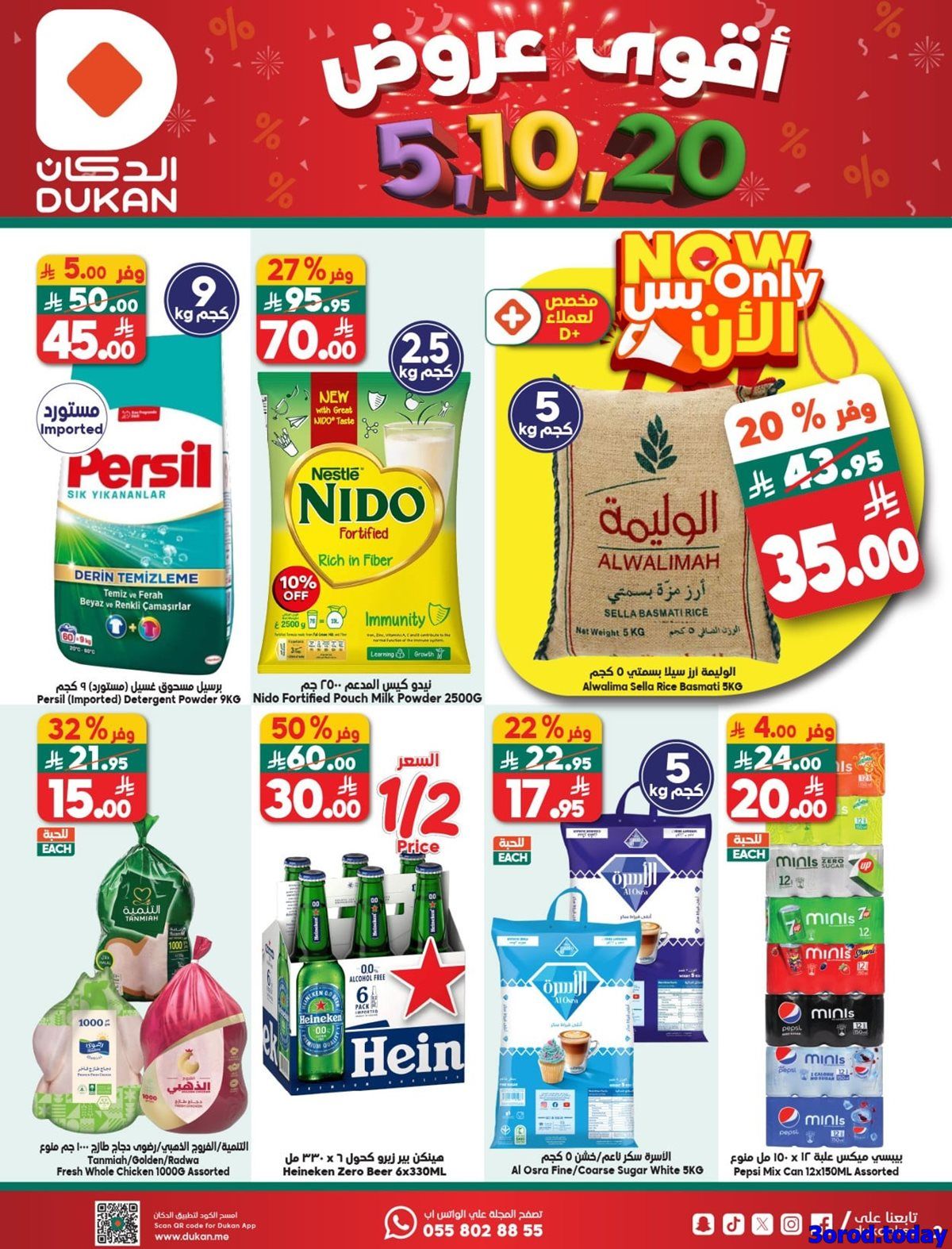 عروض الدكان جدة الأسبوعية الأربعاء 18 رجب 1447هـ الموافق 7-1-2026 و تضم فرن كهربائي ومفرمة خضار وصانعة قهوة وصانعة أرز وخلاط عصائر ثم تشمل الأغذية السلق الأخضر والقرنبيط والطماطم والتفاح والعنب الأحمر والحليب الطازج والجبن القشقوان والزبدة المملحة والبرغل والفريكة وتشكيلة من اللحوم و الاسماك الشهية