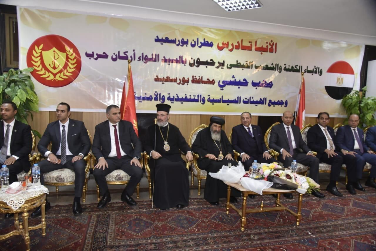أجواء فرحةومن جانبه، رحب الأنبا تادرس مطران بورسعيد بالحضور، معربًا عن سعادته بهذه الأجواء التي تعكس عمق المحبة بين أبناء الوطن الواحد، مشيرًا إلى الدروس الإنسانية المستفادة من هذه المناسبة العظيمة، ومتمنيًا لمحافظ بورسعيد والقيادات التنفيذية التوفيق في استكمال مشروعات التنمية لتكون بورسعيد نموذجًا يحتذى به.
