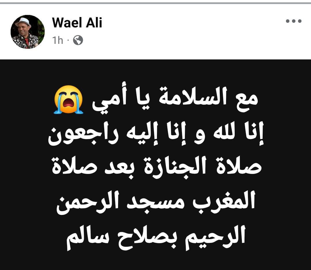 أعلن الفنان وائل على وفاة والدته، عبر حسابه الشخصي بموقع فيس بوك قائلاً: "مع السلامة يا أمي، إنا لله وإنا إليه راجعون، صلاة الجنازة بعد صلاة المغرب بمسجد الرحمن الرحيم بصلاح سالم"، وسرعان ما قدم الكثير من أصدقائه واجب العزاء.