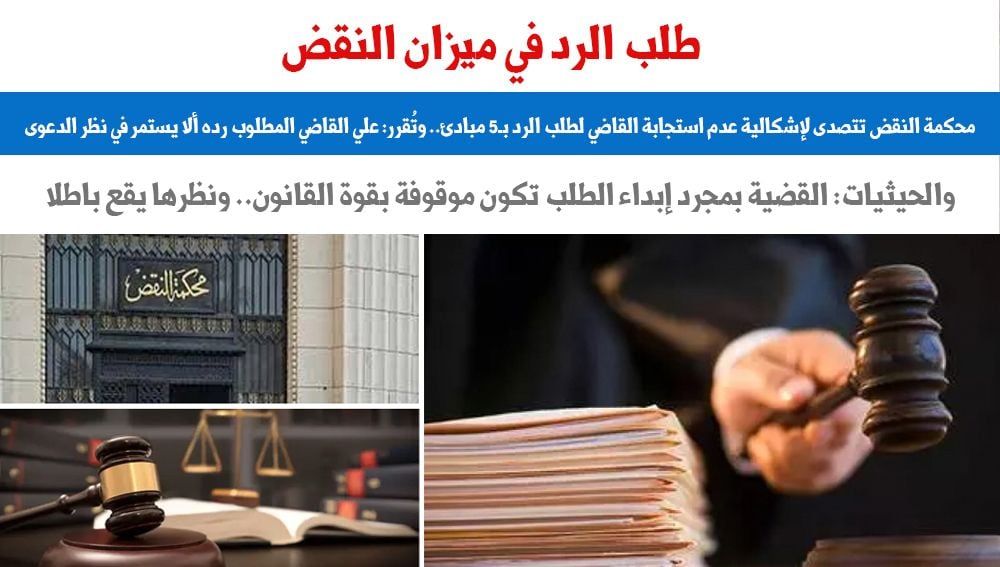 النقض تتصدى لإشكالية عدم استجابة القاضي لطلب الرد بـ5 مبادئ.. وتُقرر: علي القاضي المطلوب رده ألا يستمر في نظر الدعوى.. والحيثيات: القضية بمجرد إبداء الطلب تكون موقوفة بقوة القانون.. ونظرها يقع باطلا