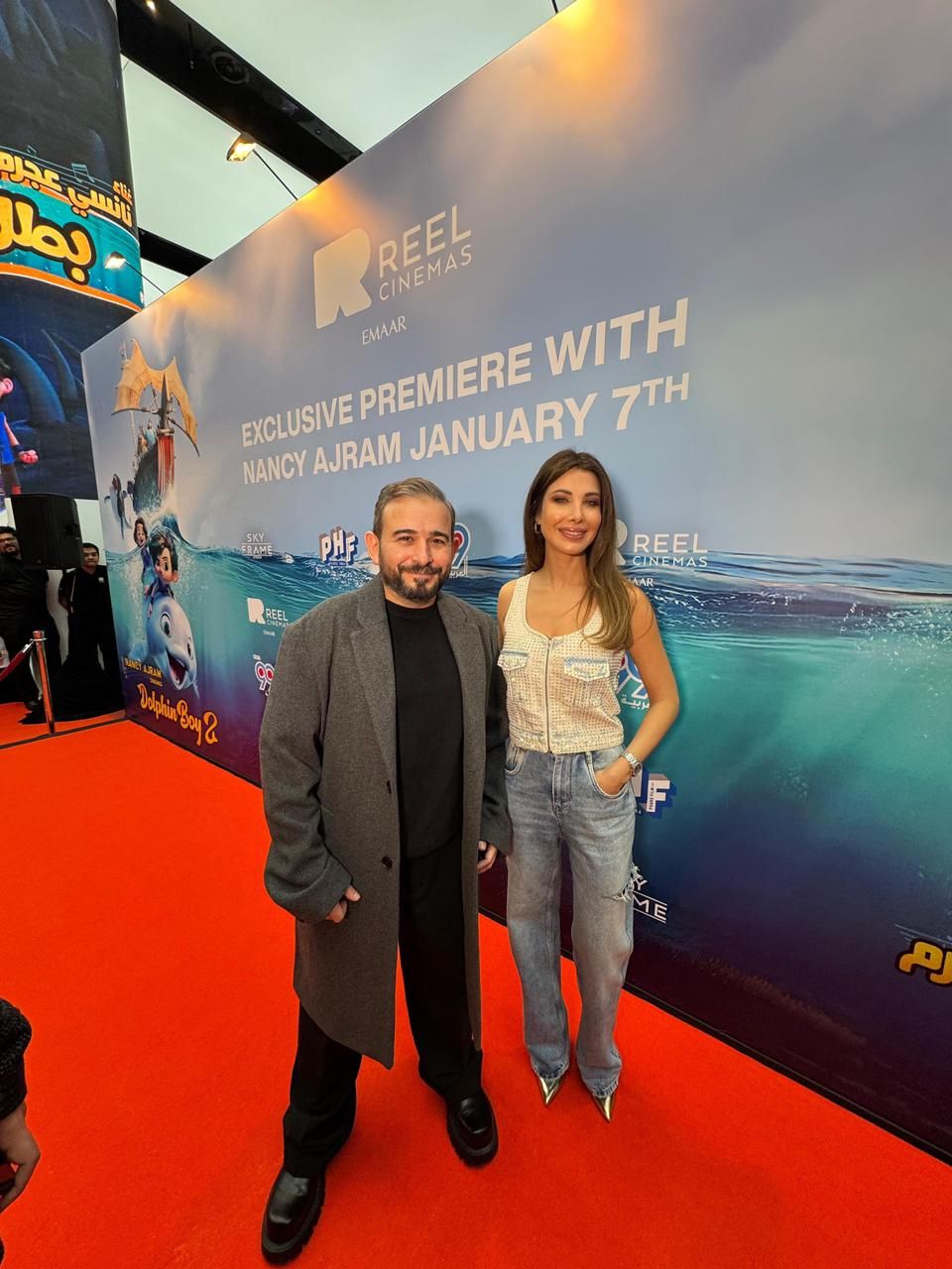 حرصت النجمة اللبنانية نانسى عجرم على حضور العرض الخاص لفيلم بطل الدلافين، الذى أقيم منذ قليل فى دبي، وكان يشاركها الحضور صناع أغنيتها التى كانت ضمن أحداث الفيلم، وهم الموزع الموسيقى أحمد عادل والشاعر تامر حسين والملحن مدين.