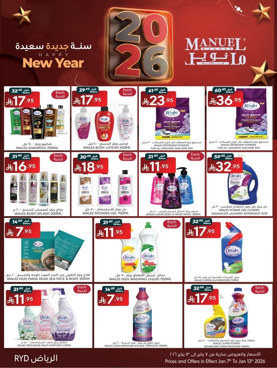 تحتوي عروض مانويل الرياض اليوم علي : زيت زيتون الوزير – تونة فريجينتو – مخلل طرشي مشري – أرز السفير مزة – عسل المراعي طبيعي – منظف لترو – مربى تين وفراولة – جبنة الطيب قليلة الملح – زيت زيتون الجميل – مسحوق غسيل بريدوكس – حمص بالطحينة – حليب مجفف كامل الدسم – عسل بيدر صافي – سلطة جبنة قطع خضار – زيت زيتون بيتوتي