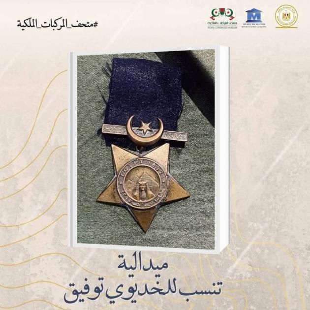 يعرض متحف المركبات الملكية ميدالية مزخرفة تحمل نقشاً للأهرامات وأبي الهول، وترجع إلى عصر الخديوي توفيق.