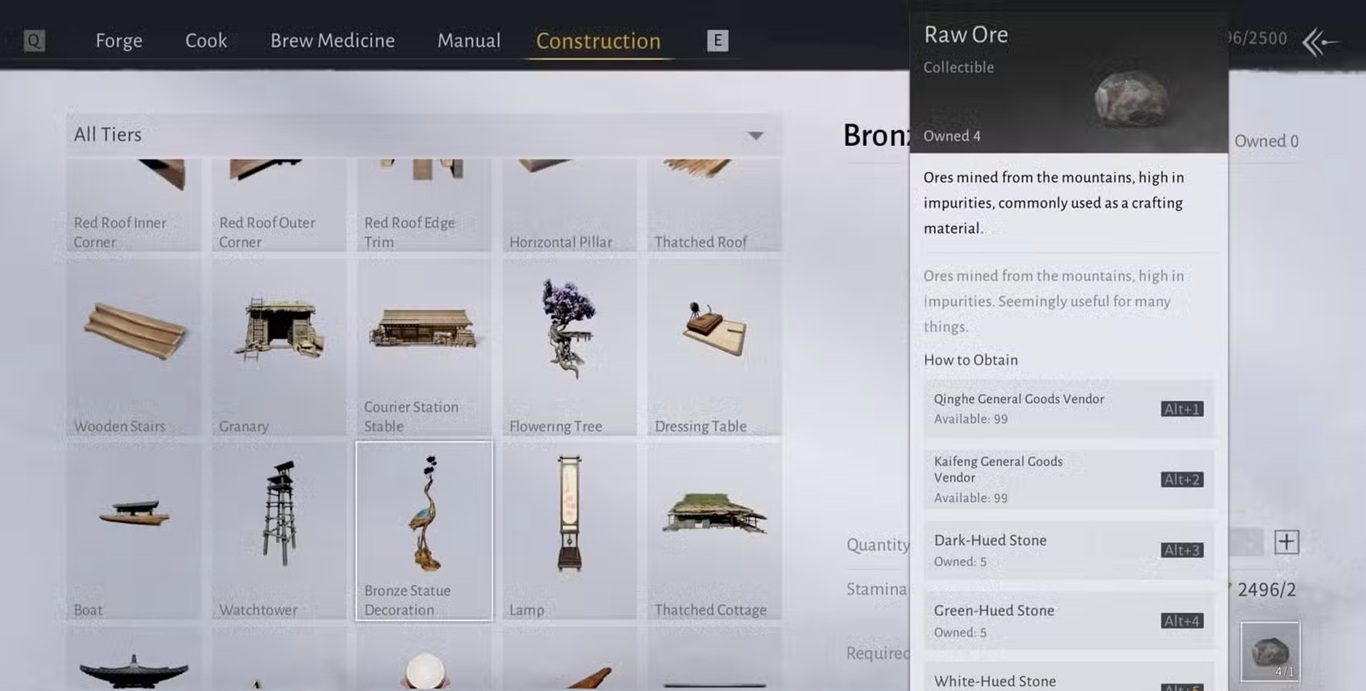 الآن، كل هذا البناء قد يكون ممتعاً للغاية، لكنه لا يأتي مجاناً. ستحتاج إلى مواد بناء، وهي بشكل أساسي الخشب والخام المعدني. معظم العناصر لا تتطلب الكثير من أي منهما، لكن عندما تبدأ في بناء هياكل كبيرة، ستجد أن الكمية المطلوبة سترتفع بسرعة كبيرة.