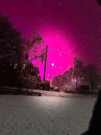 قال سيمون كينج: "الظروف الجوية مع انخفاض السحب، وحتى أثناء تساقط الثلوج، تجعل السماء أكثر انعكاسًا للأضواء، بما فيها أضواء الشوارع والمباني وأضواء ملاعب كرة القدم". وأضاف أن الأضواء الورديّة الخاصة بالنادي، رغم أنها مخصصة لنمو العشب، أسهمت في خلق مشهد سماوي خلاب.