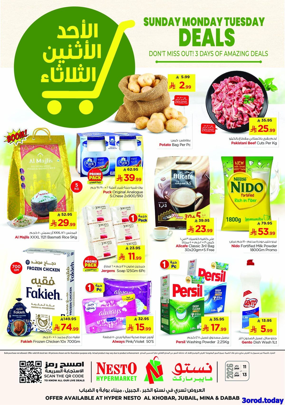 عروض نستو الدمام الاحد 11-1-2026 الموافق 22 رجب 1447هـ و تحتوي علي اقوي التخفيضات علي المنتجات الاساسية و الاستهلاكية في اي منزل منها البهارات و المعلبات و ايضا اصناف اللحوم الطازجة و ايضا بتوفر الاسبوع ده تشكيلة من الالكترونيات و يبحث عنها الكثير في صفقات حصرية متاحة لمدة 3 ايام وباسعار تنافسية .