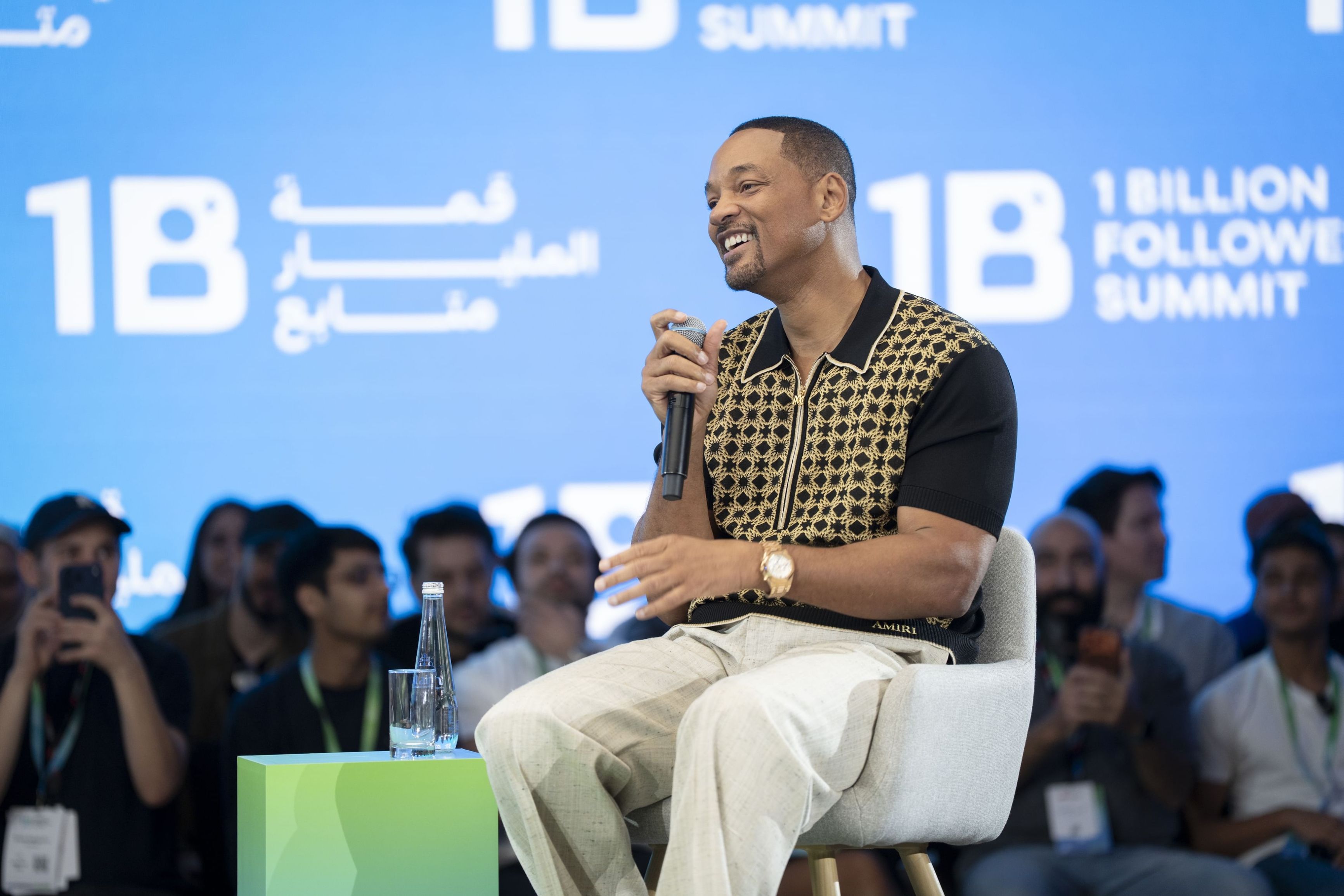 وشارك في الجلسة إلى جانب ويل سميث كل من رئيس مجلس الإدارة والرئيس التنفيذي لشركة "سي القابضة" المطورة لمشروع المدينة المستدامة في دبي فارس سعيد، فيما أدار الجلسة صانع المحتوى والمؤثر الإماراتي سفير قمة المليار متابع خالد العامري، في حوار جمع بين التجربة الإنسانية العميقة والرؤية المستقبلية للمدن المستدامة.