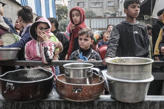 أبطال هذه المشاهد القاسية هم الأطفال، الذين يحملون أواني فارغة على أمل الحصول على القليل من الحساء لسد رمق عائلاتهم النازحة في القطاع المحاصر.