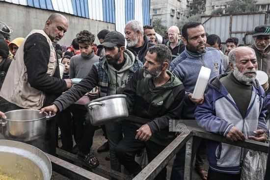 ورصدت وكالة الأنباء الأوروبية (وفا) تقريرًا ميدانيًا من مخيم النصيرات للاجئين وسط قطاع غزة، حيث ظهرت طوابير طويلة ضمت أطفالًا ونساءً وكبار سن، ينتظرون لساعات طويلة في محاولة يائسة للحصول على وجبة بسيطة تقيهم خطر الجوع.