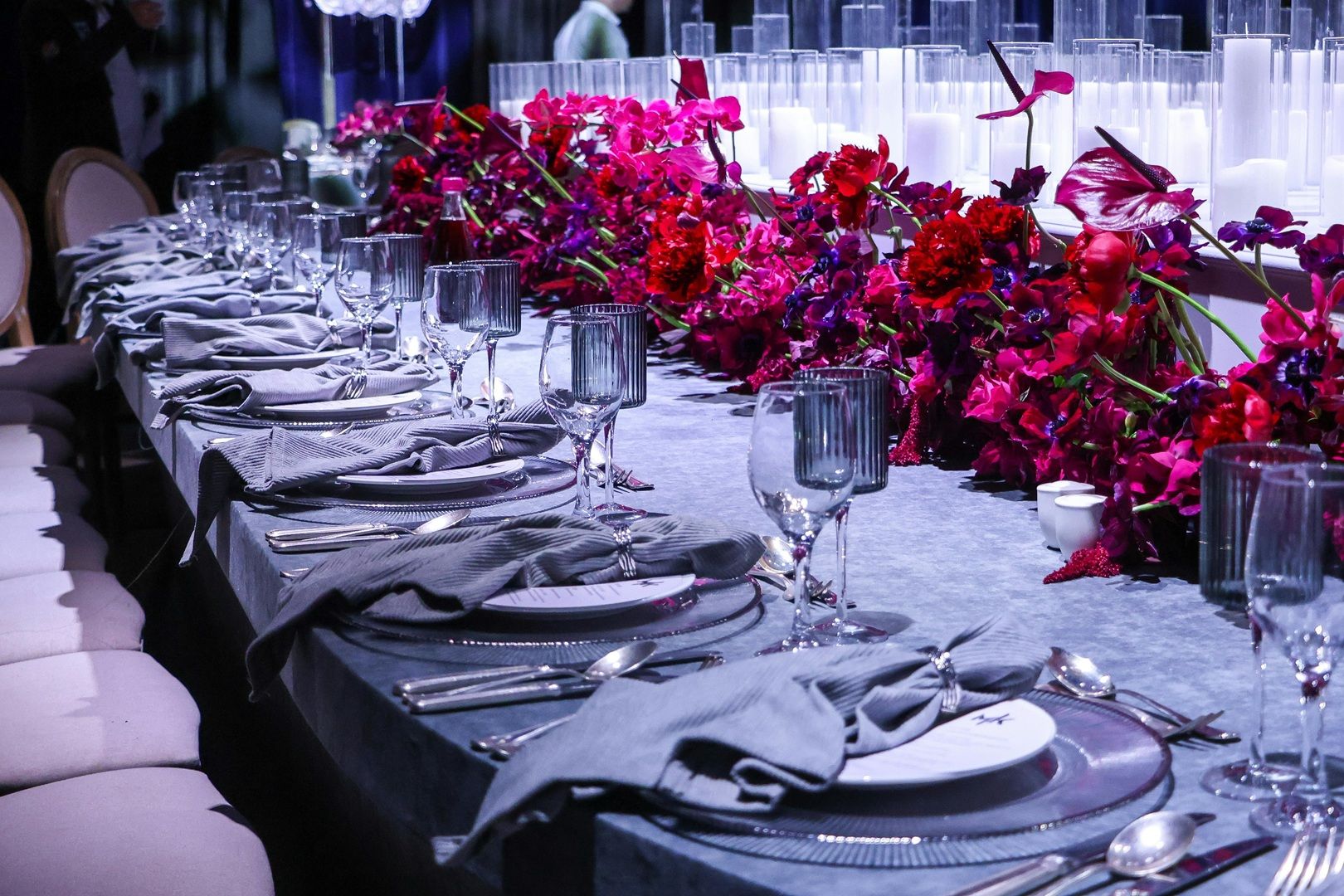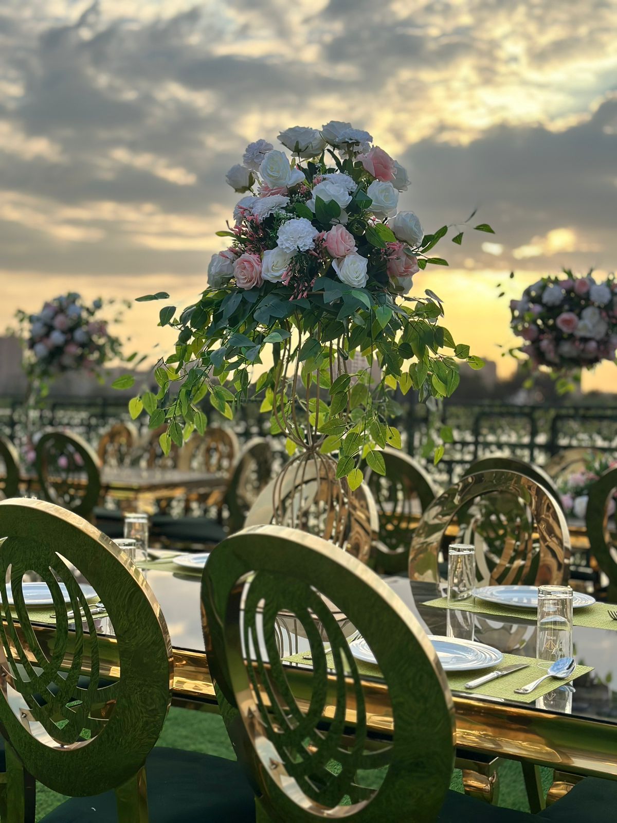 - المزج والتنسيق: يقود الجمع بين أنواع مختلفة من الطاولات (المستديرة والطويلة) إلى ديناميكية بصرية مميزة، وتنوُّعاً في التصميم حسب معلومات المصممة، ويُتيح تجارِب متنوّعة تلبّي مختلف أذواق المدعوّين.