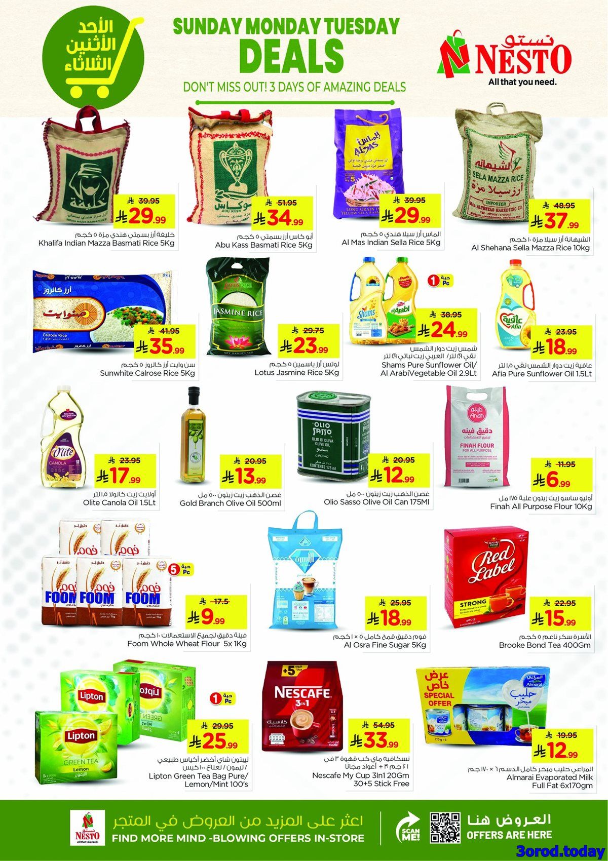 نقدم ليكم احدث نستو الاحساء الطازج الاحد 11 يناير 2026 الموافق 23 رجب 1447هـ و تحتوي علي منتجات الألبان والعسل والتونة والخبز والكعك والشيبس والحليب والجبن والزبادي والدجاج المجمد والأرز والفول والسكر و بتوفر كمان والشاي والقهوة والمنظفات والصابون والمناديل مع أواني الطهي والأواني المنزلية باسعار مناسبة
