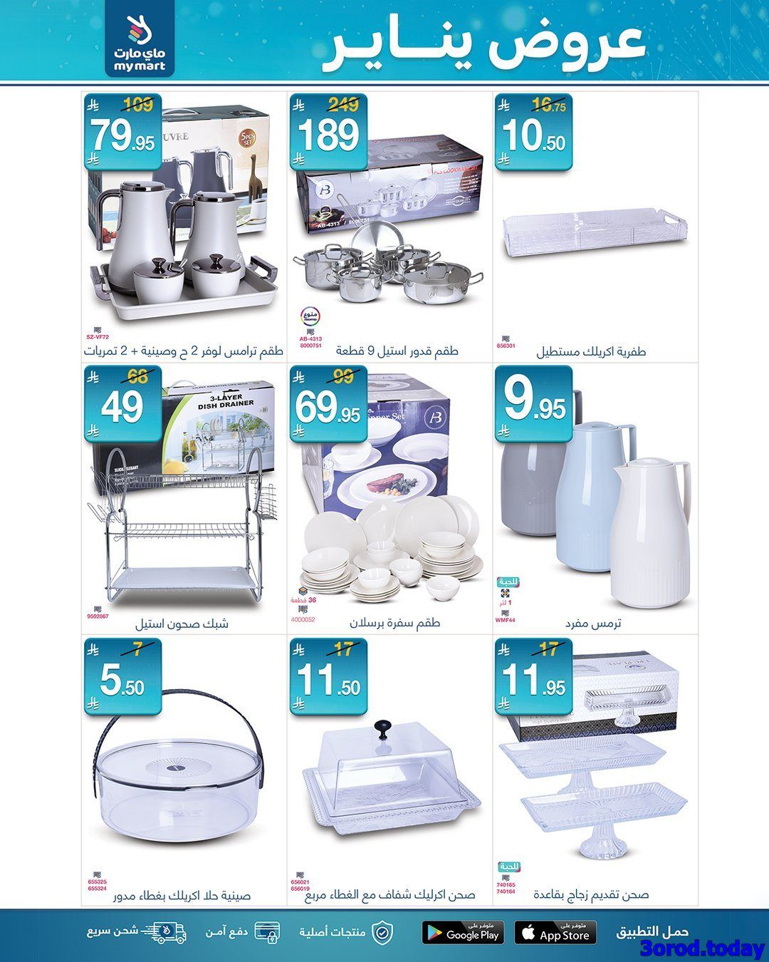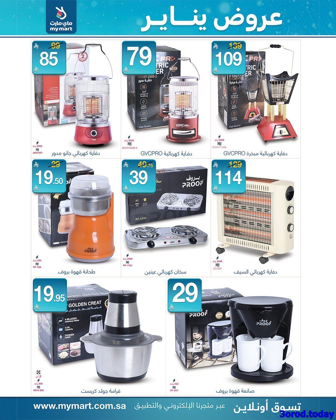بنقدم ليكم اليوم احدث عروض ماي مارت الاسبوعية الاربعاء 23-7-1447هـ الموافق 12 يناير 2026 و بتحتوي علي تشكيلة من افضل الادوات و الاجهزة المنزلية و منها الفرامات المختلفة و الدفايات المتنوعة و الخلاطات و العصارات و بتوفر كمان الملاعق و الاطباق و ادوات السفرة و تحضير الطعام و باقل الاسعار المناسبة للجميع
