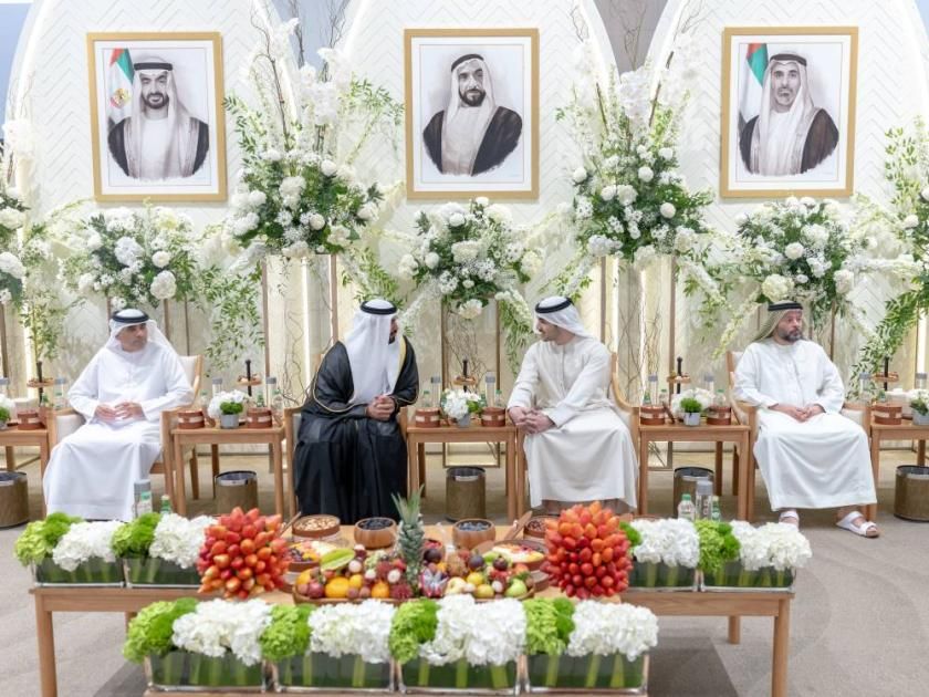 حضر سموّ الشيخ محمد بن راشد بن محمد بن راشد آل مكتوم، حفل الاستقبال الذي أقامه محمد عبد الله سيف بالجافلة، في أبوظبي، بمناسبة زفاف نجله سالم على كريمة سعيد سيف سالم النيادي.