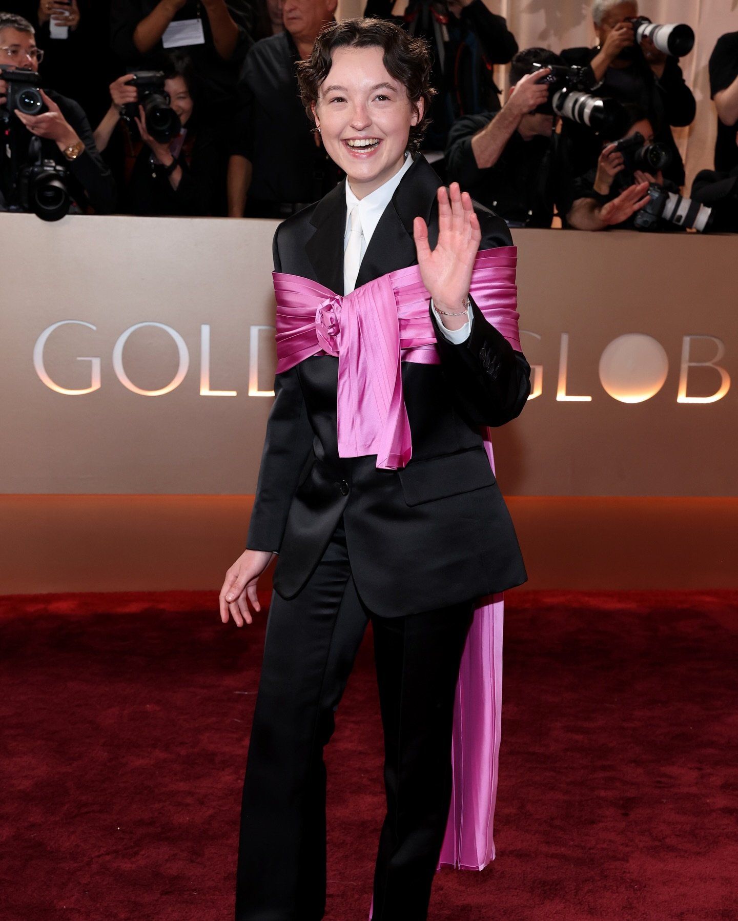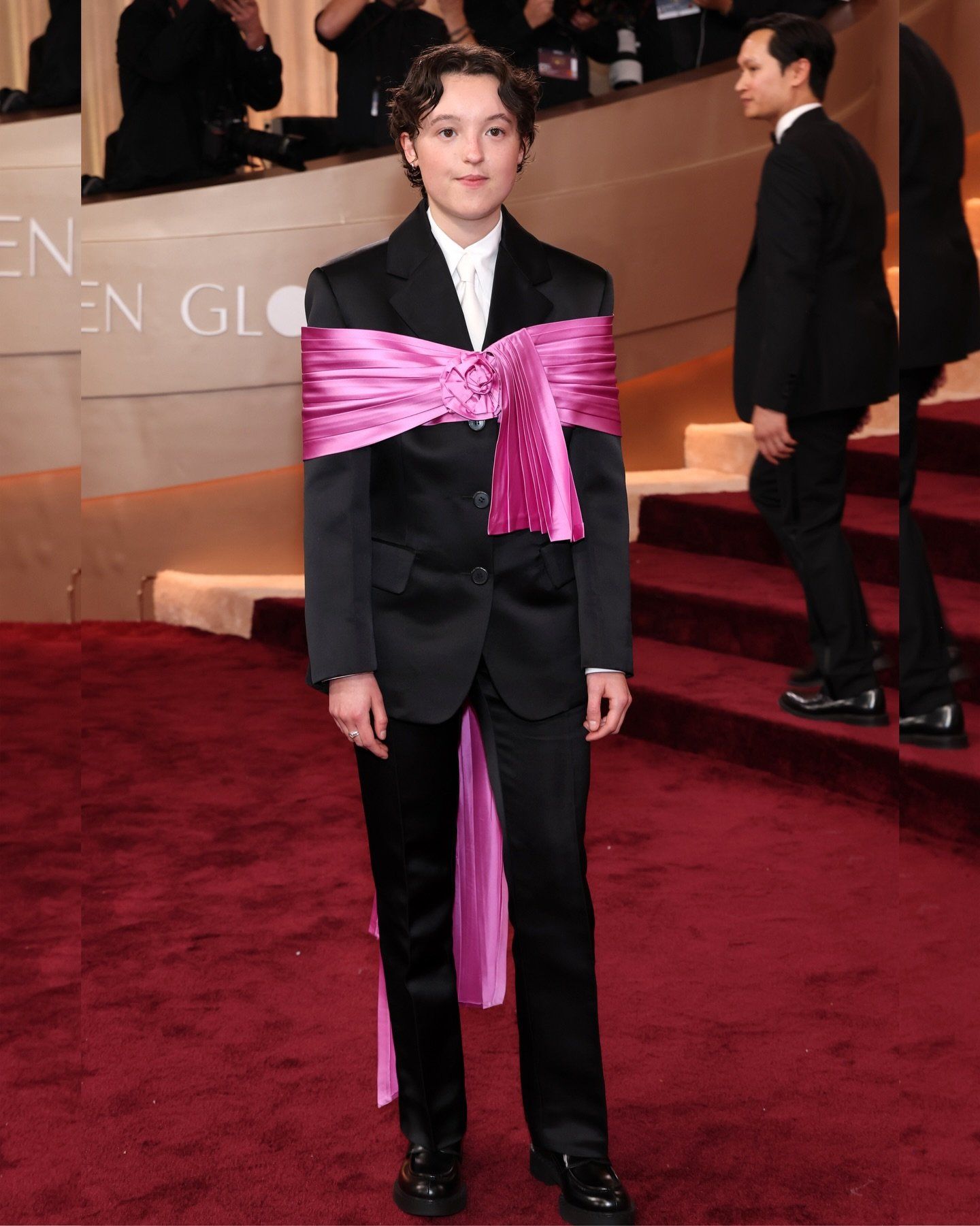 ظهرت النجمة العالمية بيلا رامزي على السجادة الحمراء لحفل الجولدن جلوب في دورته الـ83 في كاليفورنيا الأمريكية، وهي ترتدي بدلة كلاسيكية باللون الأسود، ووضعت شارة عليها كأنها هدية تم تغليفها، كما أظهرت النجمة هايلي ستاينفيلد حملها بفستان باللون الجولد على السجادة الحمراء، وخطف كل من النجم العالمي جورج كلوني وزوجته أمل كلوني الأضواء لهما بإطلالة كلاسيكية هادئة.