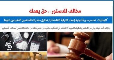 "الجنايات" تحسم مدى قانونية إصدار النيابة العامة قرار تحليل مخدرات للمتهمين المُعرضين عليها.. وتؤكد: أخذ عينة بول من المتهم وتحليلها لمجرد الاشتباه فى تعاطيه مخدر دون قيام حالة من حالات التلبس "مخالف للدستور"