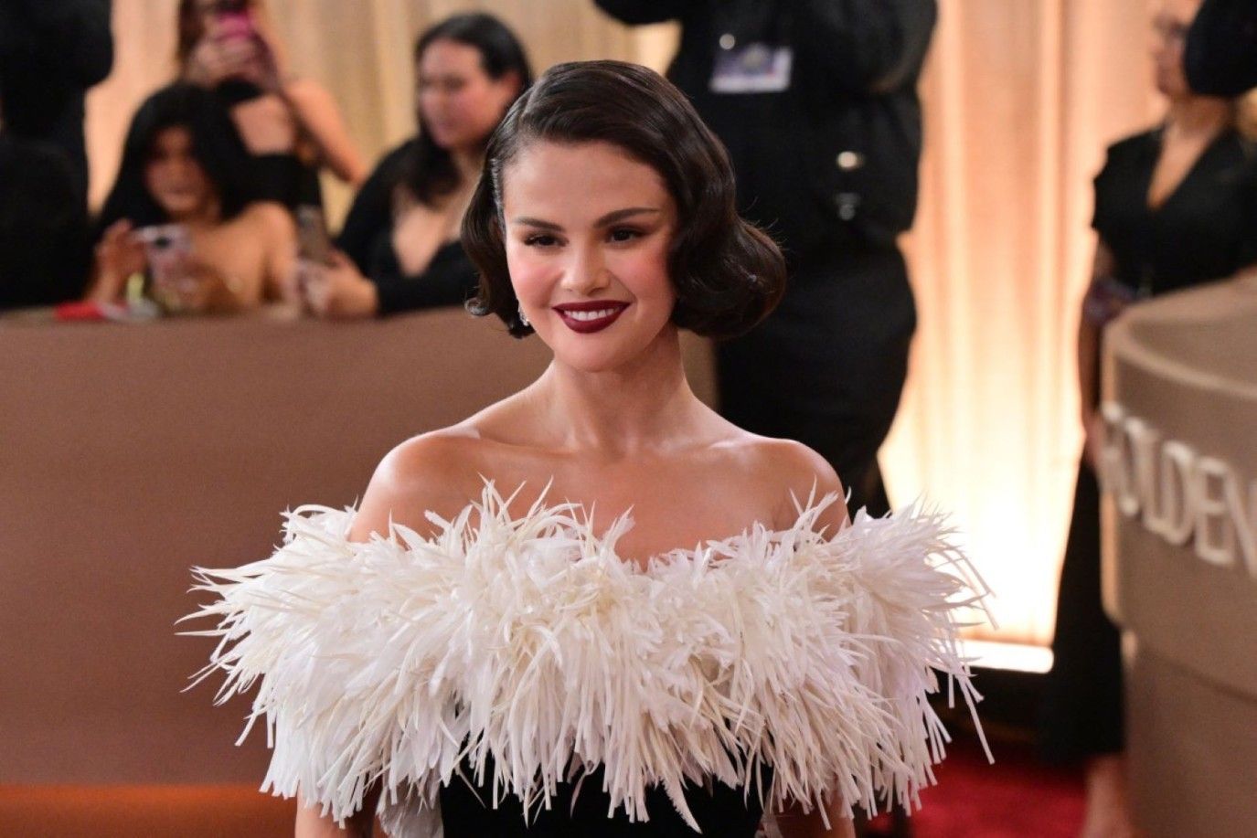 سيلينا غوميز Selena Gomez اختارت تسريحة شعر جانبية مستوحاة من أناقة هوليوود الكلاسيكية، حيث الشعر المنسدل بتموجات ناعمة ومصقولة تعكس رقي الإطلالة. جاءت الخصل مرتبة بعناية مع فرق جانبي عميق أضفى لمسة درامية أنثوية بارزة. التسريحة أبرزت ملامح الوجه والرقبة بانسجام مثالي مع الأقراط اللافتة والفستان المكشوف الكتفين. هذا الستايل يعد خياراً مثالياً للسهرات الرسمية لمحبات الأناقة الهادئة والفخامة الخالدة.