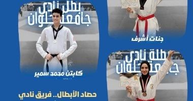 في إنجاز رياضي جديد يضاف إلى سجل بطولات نادي جامعة حلوان، نجح فريق النادي الجامعي للتايكوندو في تحقيق نتائج مبهرة خلال مشاركته في بطولة معاهد مصر، حيث تمكن أبطال الفريق من اعتلاء منصات التتويج وسط منافسة قوية بين مختلف الفرق المشاركة. وتحققت عدد من الإنجازات جاءت كالتالي: