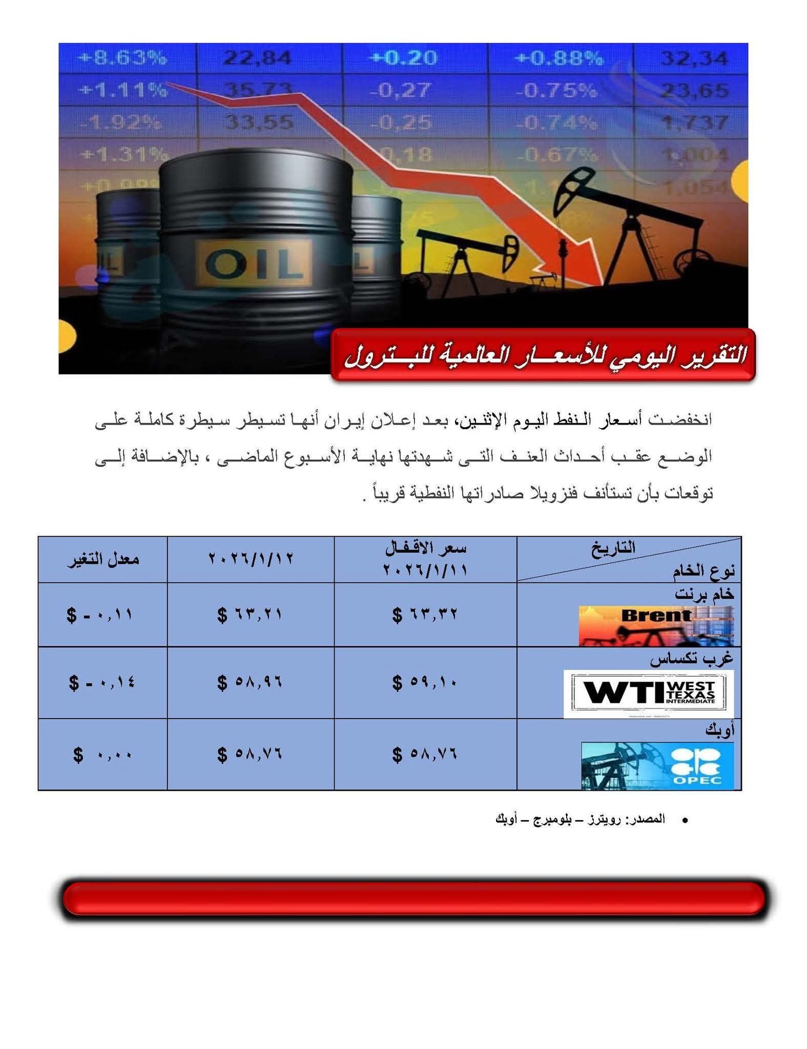 وأشار التقرير اليومى للأسعار العالمية للبترول، انخفاض أسعار النفط اليوم الإثنين، بعد إعلان إيران أنها تسيطر سيطرة كاملة على الوضع عقب أحداث العنف التي شهدتها نهاية الأسبوع الماضي، بالإضافة إلى توقعات بأن تستأنف فنزويلا صادراتها النفطية قريباً.