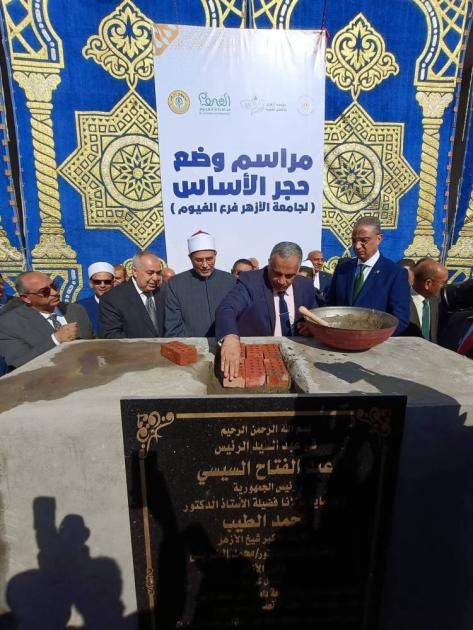 وضعت جامعة الأزهر حجر الأساس لإنشاء فرع للجامعة في محافظة الفيوم يضم كليات جديدة تلبي احتياجات المجتمع. وشارك في وضع حجر الأساس، وفق ما أعلنته الجامعة، مساء الأحد، د. أحمد الأنصاري، محافظ الفيوم، وفضيلة د. سلامة جمعة داود، رئيس جامعة الأزهر، ود. محمد التوني، نائب المحافظ، ومن المقرر أن تقام الجامعة في زمام دار الرماد بمدينة الفيوم، على مساحة تقارب 30 ألف متر مربع.