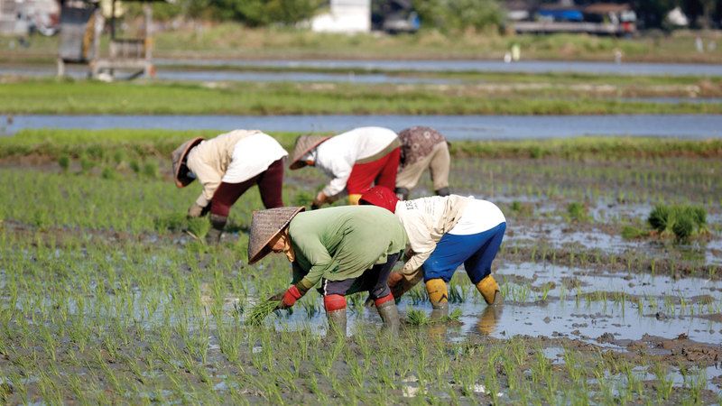 فلاحون يزرعون الأرز في بداية موسم الزراعة بمنطقة بلانغ بينتانغ في إقليم آتشيه بيسار الإندونيسي، وقال وزير الزراعة الإندونيسي، أندي عمران سليمان، إن البلاد تستهدف إنتاج أكثر من 34 مليون طن من الأرز خلال عام 2026، كجزء من الجهود الرامية إلى تعزيز الأمن الغذائي، والحفاظ على الاكتفاء الذاتي من هذا الغذاء الاستراتيجي، ويعكس ذلك تغييراً في اتجاه سياسة الغذاء الحكومية التي كانت دائماً مثيرة للقلق.