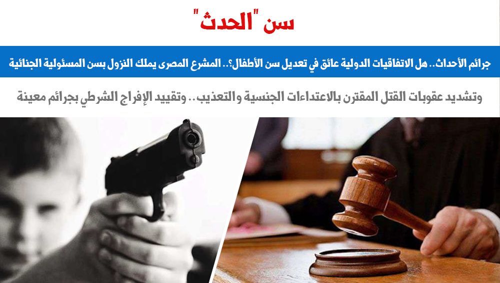 جرائم الأحداث.. هل الاتفاقيات الدولية عائق فى تعديل سن الحدث؟.. المشرع المصرى يملك النزول بسن المسئولية الجنائية.. وتشديد عقوبات القتل المقترن بالاعتداءات الجنسية والتعذيب.. وتقييد الإفراج الشرطى بجرائم معينة