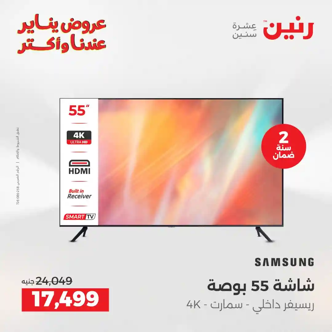 تسرى عروض رنين من يوم الخميس للسبت 15 – 16 – 17 يناير 2026 للاجهزة الكهربائية بجميع الفروع