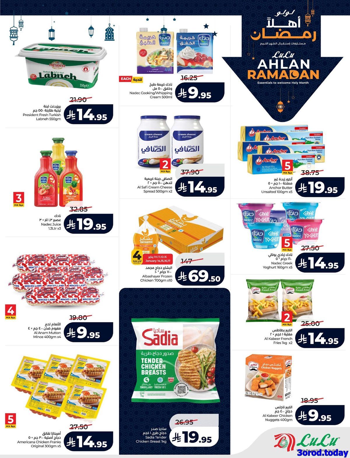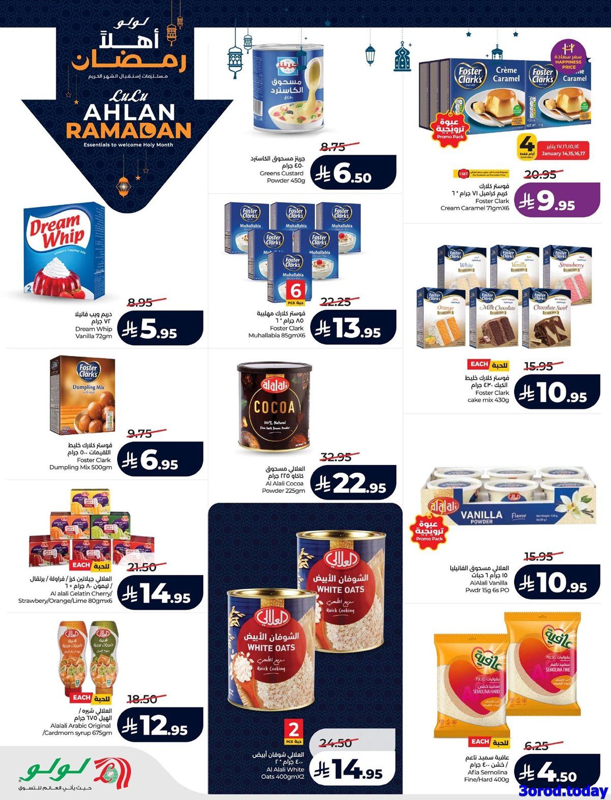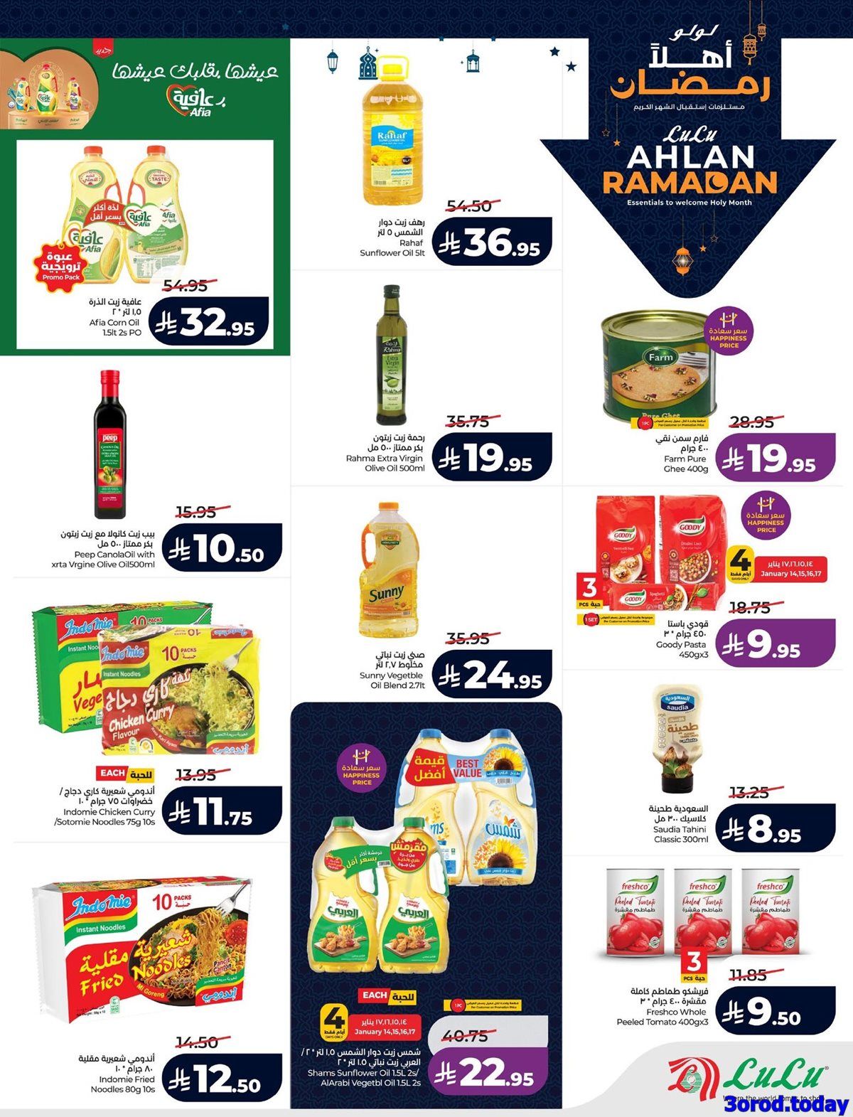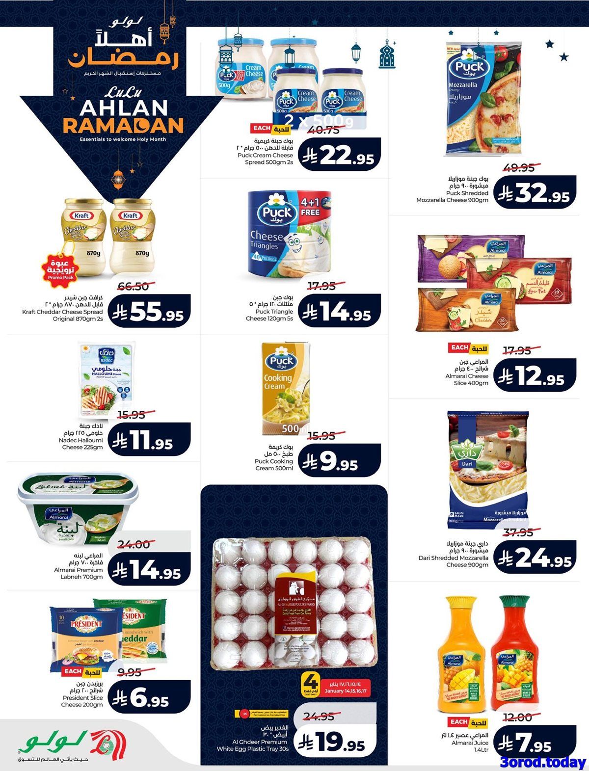 عروض لولو المنطقة الشرقية الأربعاء 14-1-2026 الموافق 25 رجب 1447هـ و تحتوي على بيض المائدة وزيت الذرة وأكياس الأرز المصري وحلاوة طحينية ومعلبات التونة والذرة الحلوة وحليب مبخر ولبنة و بتشمل أيضا أجهزة منزلية متميزة منها فرن كهربائي كبير ومحمصة خبز عريضة وشواية فحم وسخان مياه فوري ومكواة كبس وموزع مياه