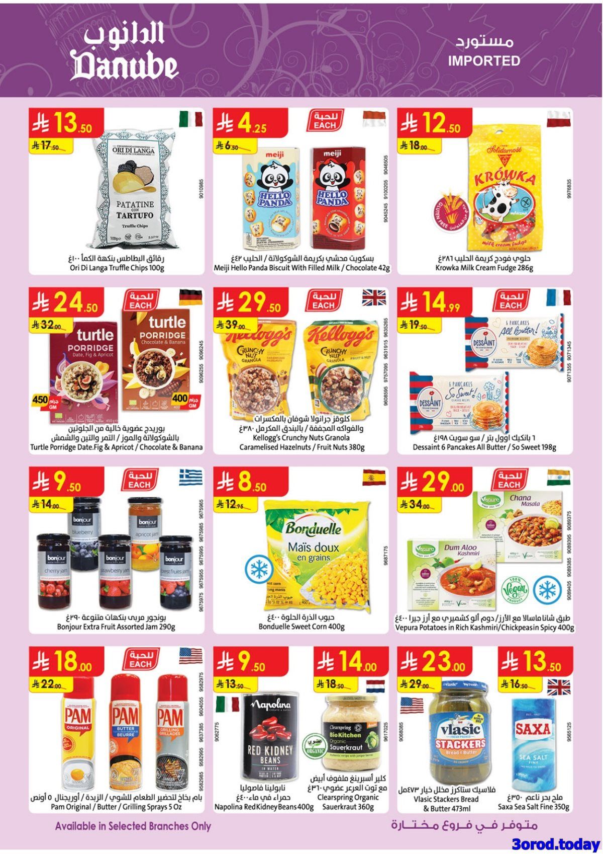 الدانوب المنطقة الشرقية الأربعاء 14-1-2026 الموافق 25 رجب 1447هـ تحتوي على تشكيلة من المنتجات الغذائية المتنوعة تشمل الربيان الجامبو واللحم الضأن المبرد وزيت دوار الشمس الصافي وأرز المزة ومعلبات الفطر المقطع وتستعرض العروض أيضا أجهزة منزلية منها ميكروويف بشواية وفرن كهربائي سعة متوسطة وقلاية زيت