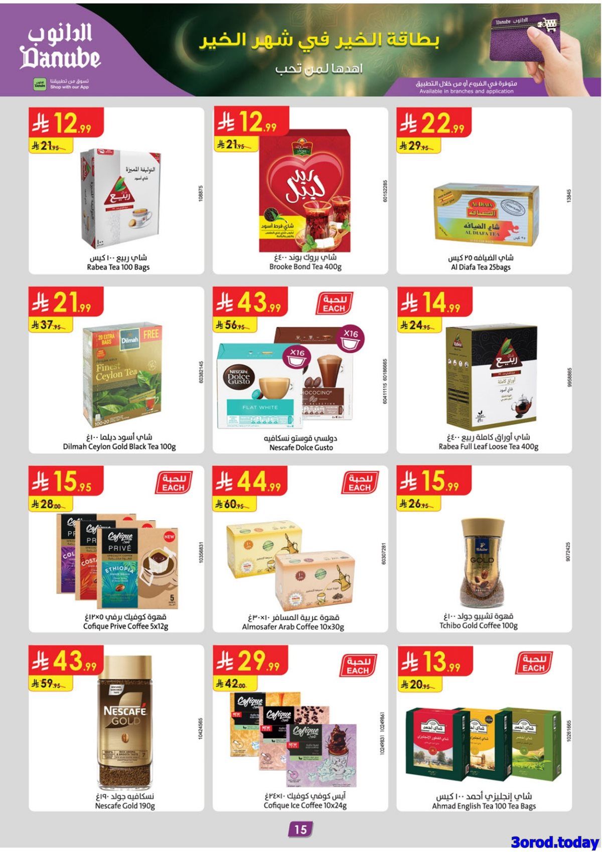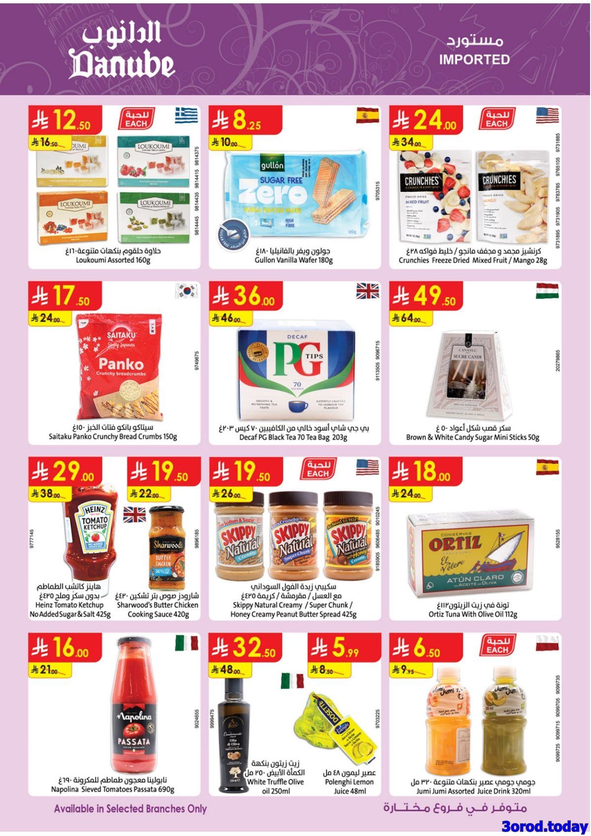 عروض الدانوب جدة الأربعاء 14 يناير 2026 الموافق 25-7-1447هـ تتضمن تشكيلة غذائية تبدا بشرائح السلمون المدخن وجبن الماعز الفرنسي وزيت بذور العنب مع توفر التوت البري الطازج والهليون والمخبوزات الصحية واللحم البقري و يضم صانعة القهوة المقطرة وجهاز طهي البيض بالبخار ومكينة فرم الثوم الكهربائية وشواية باسعار مناسبة في عروض و تخفيضات رمضان 2026 .