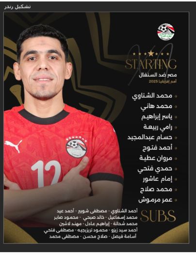 وأعلن حسام حسن المدير الفني لمنتخب مصر عن التشكيل الأساسي الذي سيبدأ به مباراة منتخب السنغال، كالتالى: