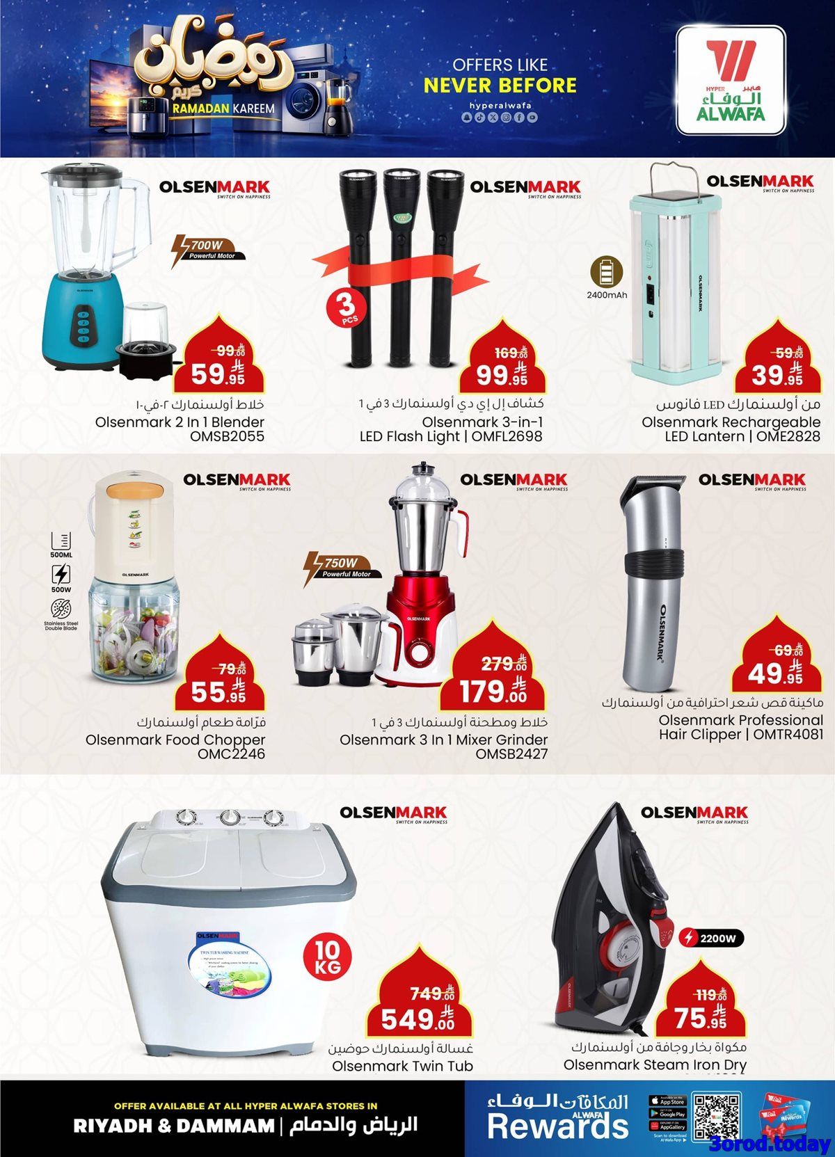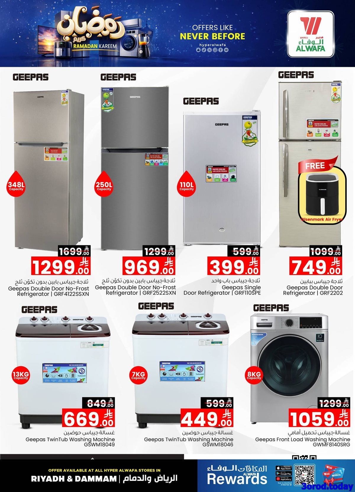 عروض الوفاء هايبر ماركت – عروض رمضان بتاريخ الخميس 15 يناير 2026 و تحتوي علي تشكيلة من الاجهزة الكهربائية منها الغسالات و الثلاجات و مواقد الغاز و بتوفر كمان الاجهزة العملية للمطبخ من القلايات الهوائية و الخلاطات و الفرامات و باسعار مميزة بمناسبة شهر رمضان الكريم و لفترة محدودة لا تفوت الفرصة ووفر الان