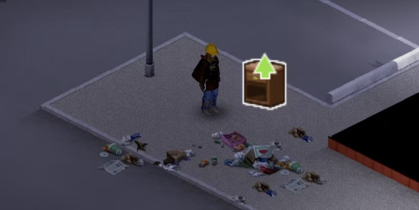توجد هذه الأيقونة في الجهة العلوية اليسرى من الشاشة، وعند تمرير مؤشر الفأرة فوقها تظهر عدة خيارات فرعية. لالتقاط القمامة، يجب اختيار أيقونة الخزانة التي يظهر عليها سهم أخضر متجه إلى الأعلى. بعد ذلك، يقترب اللاعب من القمامة وينقر عليها لإضافتها إلى المخزون. لا تمتلك القمامة أي استخدامات في التصنيع وقد تكون ثقيلة للغاية، لذلك يُنصح بوضعها داخل سلة مهملات أو حاوية قمامة واستخدام خيار delete all.