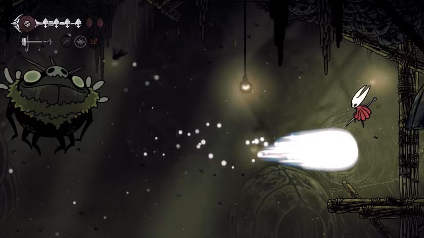 هنا تبدأ أول جدار حقيقي يواجهه اللاعبون في Silksong، إذ يستغل هذا الزعيم ميزة تتكرر كثيرًا خلال المغامرة: معظم الهجمات تُسبب ضررًا مضاعفًا يعادل قناعين، مما يجعل كل خطأ مكلفًا.