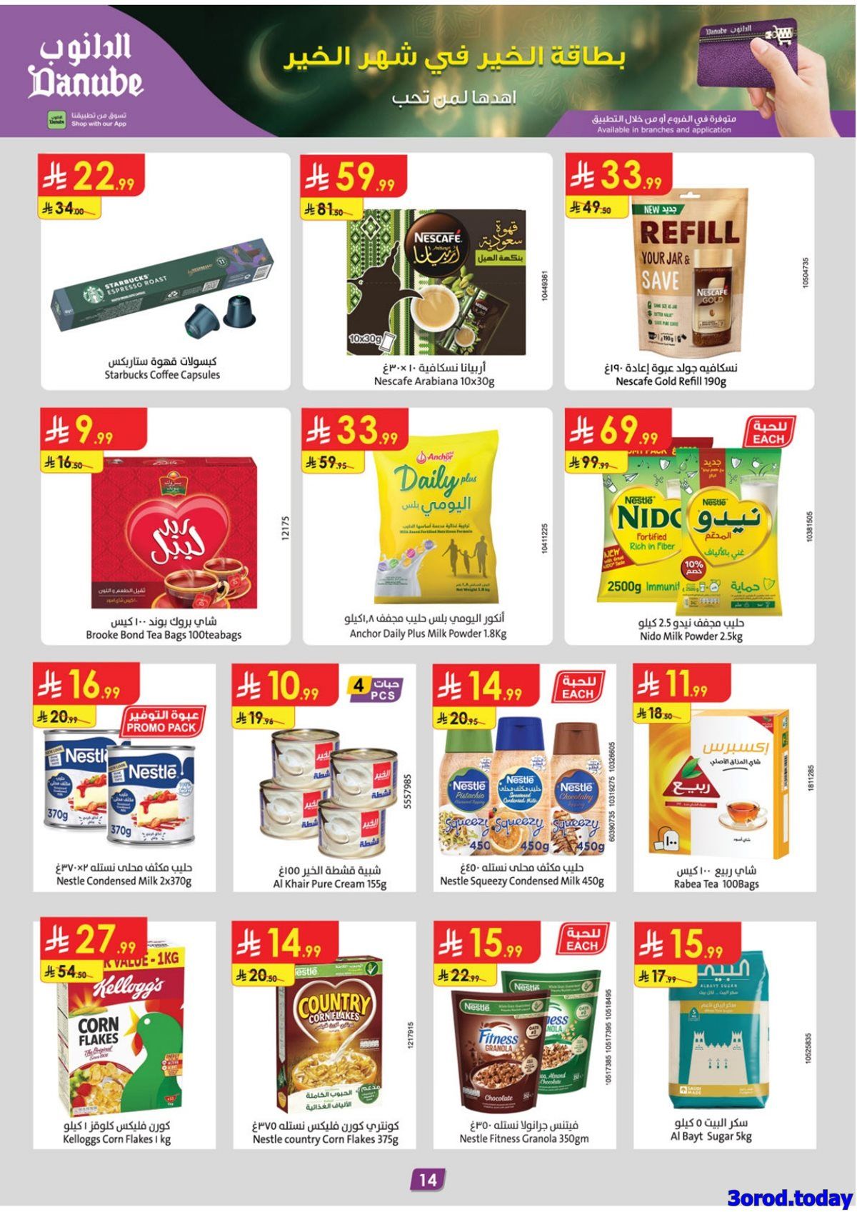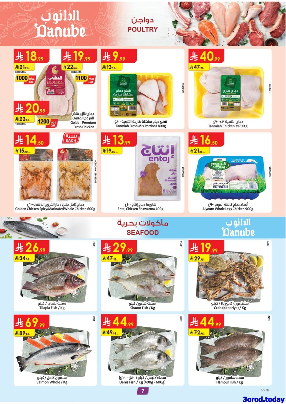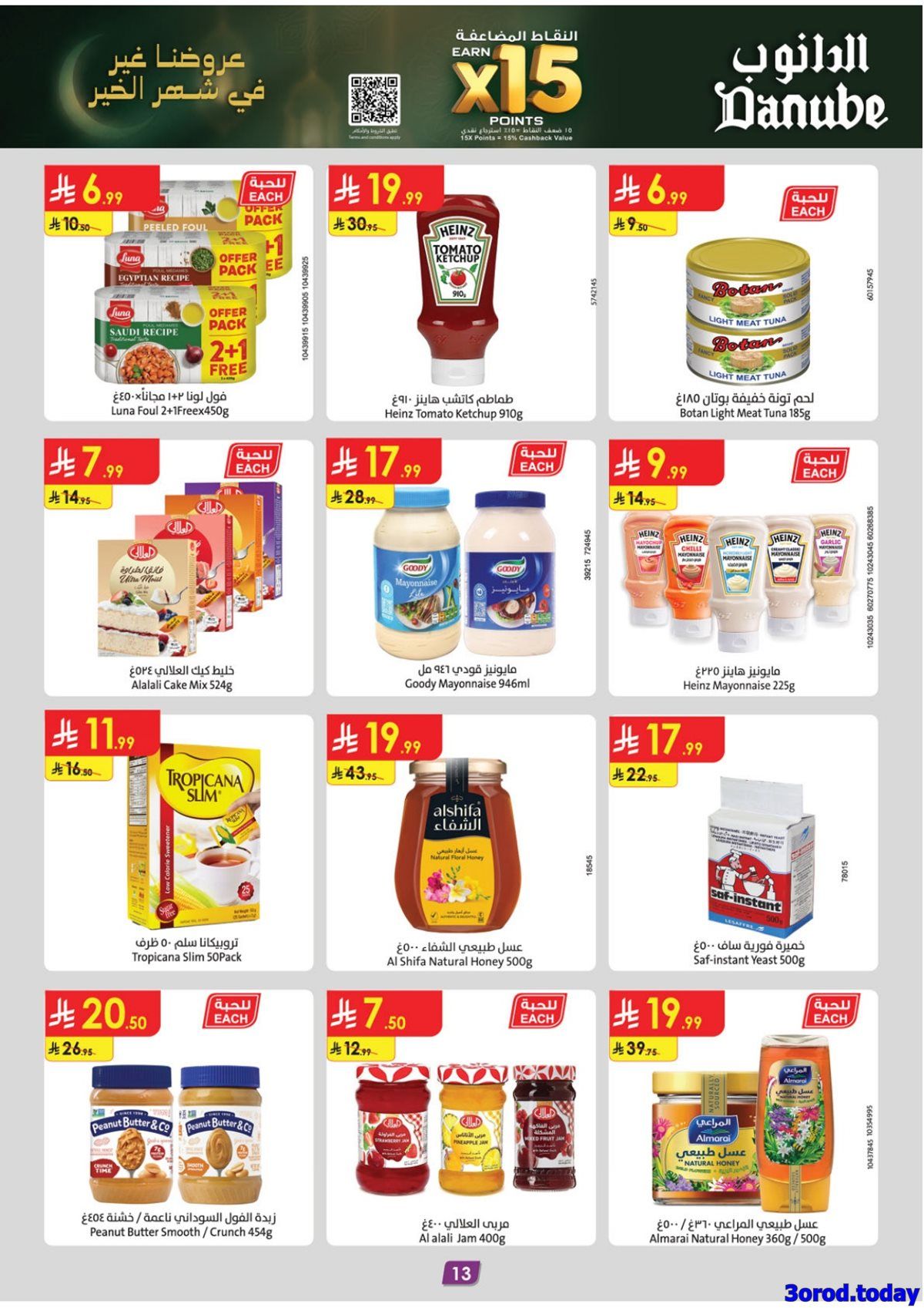 عروض الدانوب خميس مشيط صفحة واحدة الخميس 26 رجب 1447 هـ الموافق 15 يناير 2026 بتقدم منتجات غذائية متنوعة تشمل السمن البري والعسل الطبيعي واللحم البلدي والقهوة العربية والتمور والخضروات والفاكهة والأجبان واللبن والدقيق