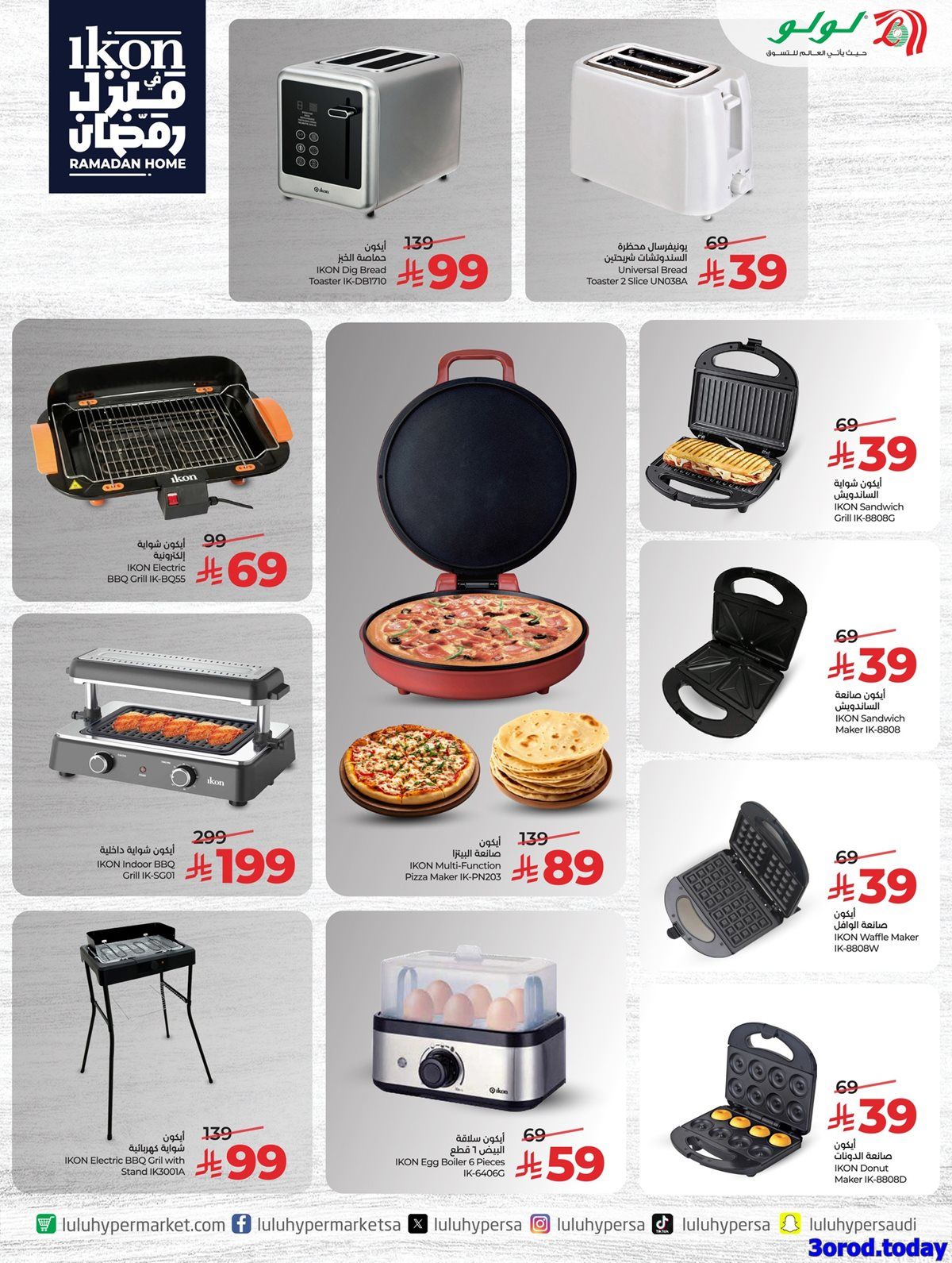 بنقدم ليكم اليوم احدث لولو الخميس 15 يناير 2026 الموافق 26 رجب 1447هـ و تحتوي علي تشكيلة من اقوي الاجهزة الكهربائية من ماركة ايكون منها القلايات الهوائية و اجهزة الميكروويف و ايضا مواقد الغاز المسطحة و غيرها باسعار مميزة بمناسبة شهر الكريم 2026 ابقوا معنا علي موقعكم عروض توداي ليصل اليكم كل جديد