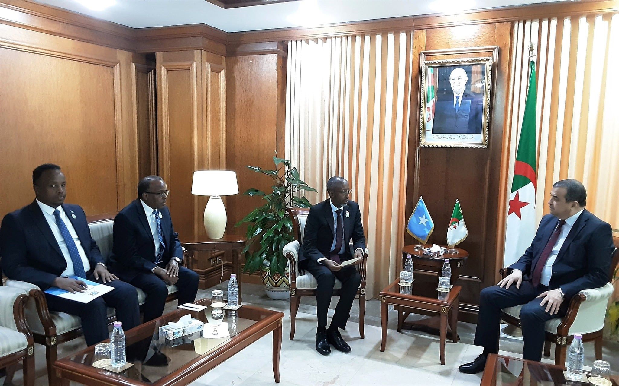 وذلك بحضور وزير الدولة للشؤون الخارجية لجمهورية الصومال الفيدرالية، علي محمد عمر، وسعادة سفير جمهورية الصومال الفيدرالية لدى الجزائر، يوسف أحمد حسن يوسف جيجو.
