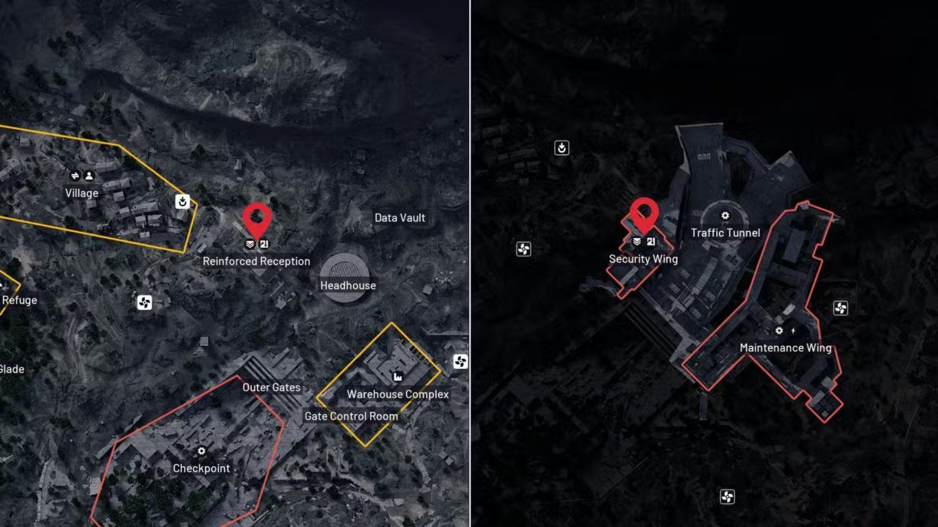للوصول إلى هذه المنطقة يجب على اللاعب الانتقال إلى الطبقة الثانية من الخريطة حيث لا تظهر Reinforced Reception Security Wing في العرض الافتراضي الأول وهو ما يجعلها أحيانا مهملة من قبل بعض اللاعبين رغم قيمتها العالية.
