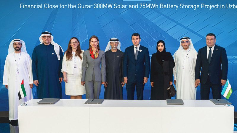 ووقّع اتفاقية استكمال الإغلاق المالي، الرئيس التنفيذي للعمليات في شركة «مصدر»، عبدالعزيز العبيدلي، وممثلون عن البنك الأوروبي لإعادة الإعمار والتنمية، وبنك التنمية الآسيوي، وبنك أبوظبي التجاري، وذلك ضمن مراسم تم تنظيمها في جناح شركة «مصدر» ضمن أسبوع أبوظبي للاستدامة، بحضور وزير الطاقة والبنية التحتية، سهيل بن محمد المزروعي، ونائب رئيس الوزراء في أوزبكستان، جمشيد خوجاييف، ووزير الطاقة في أوزبكستان، جورابيك ميرزامامودوف، والرئيس التنفيذي لشركة «مصدر»، محمد جميل الرمحي.