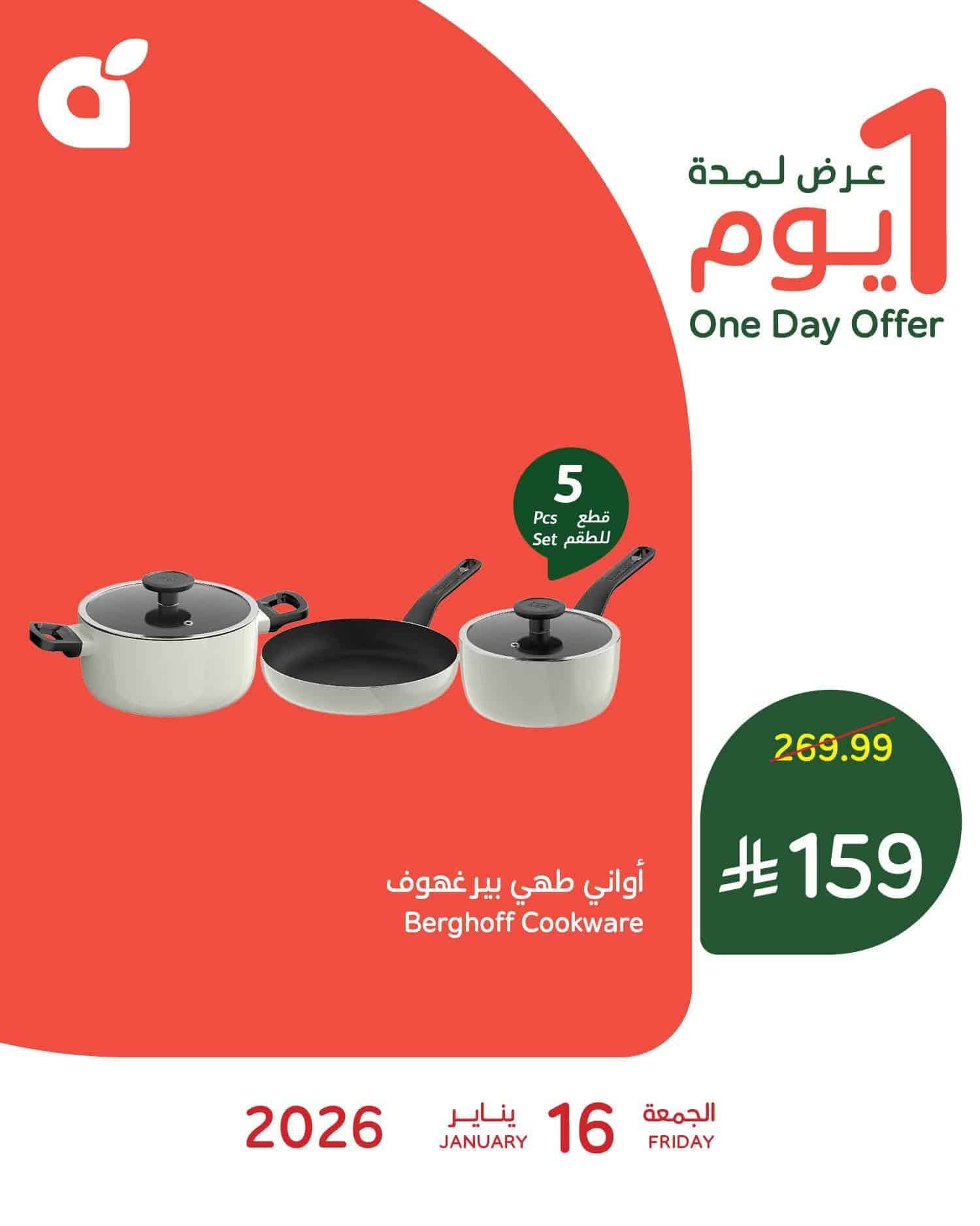 - سعر أواني طهي بيرغهوف – 5 قطع بـ 160 ريال سعودي