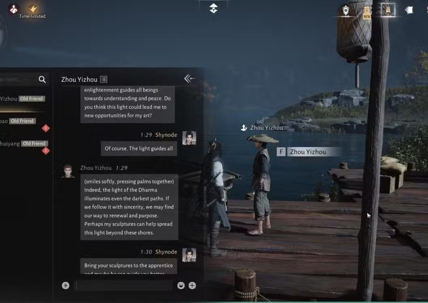 جدول الحوار مع Zhou Yizhou في لعبة Where Winds Meet