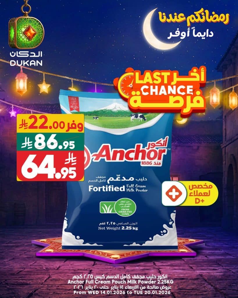 عروض الدكان ليوم الاحد 18 يناير 2026 خربناها على الأخر افضل المنتجات الحصرية بأفضل الاسعار على منتجات خاصة ومختارة في جميع الفروع الخاصة في اسواق الدكان من الساعة 6 صباحاً أو لحين تنفد الكمية استفيدوا من التخفيضات المميزه ليوم الاحد.