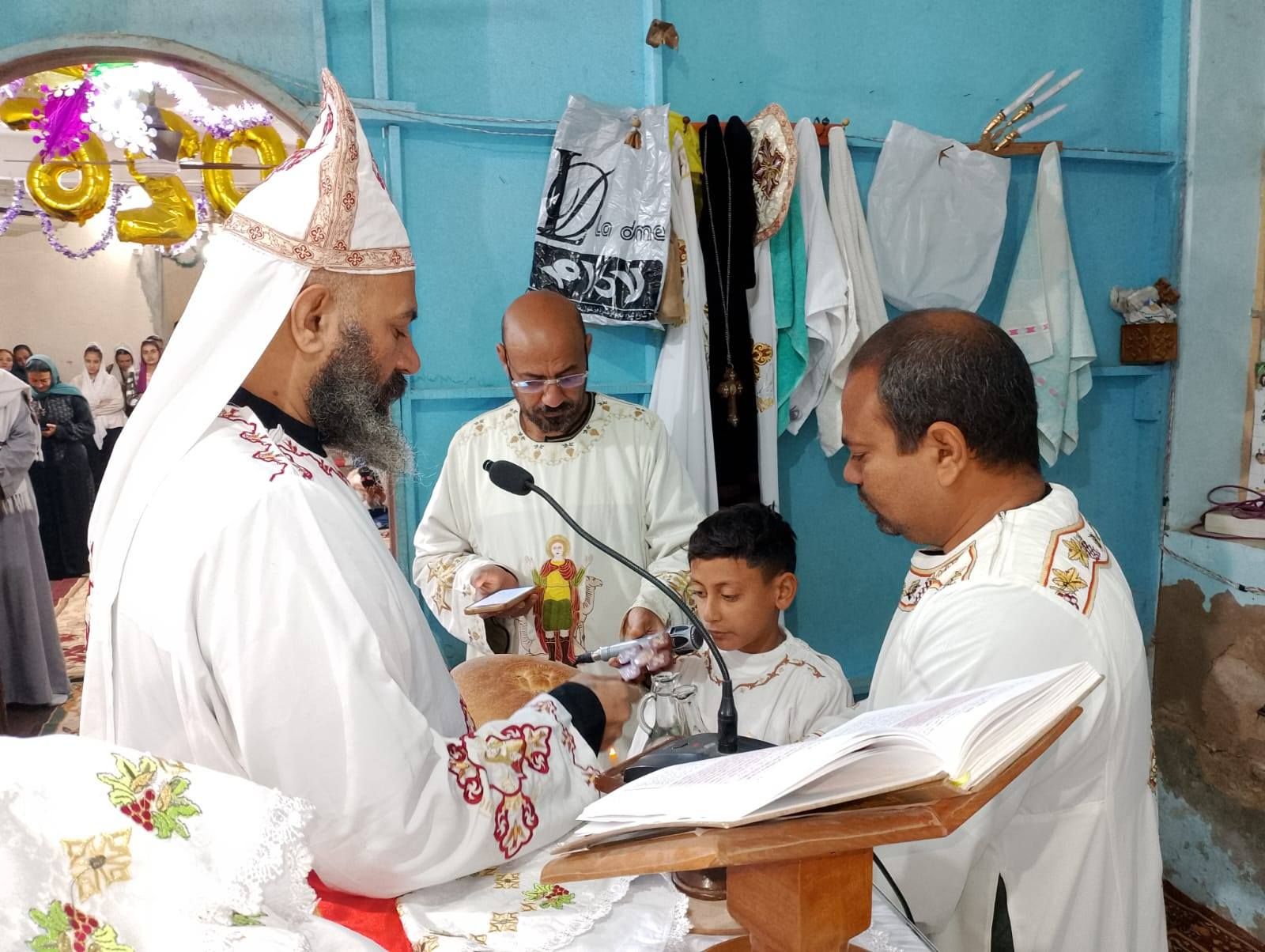 القداس الالهى بكنيسة الشهيدة الأم دولاجى وأولادها الأربعة بإسنا