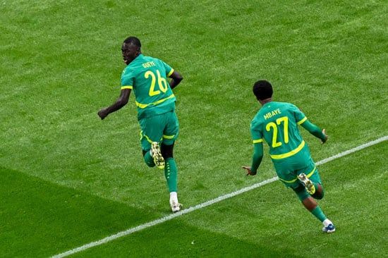 احتفال لاعبى السنغال بهدف جاى
