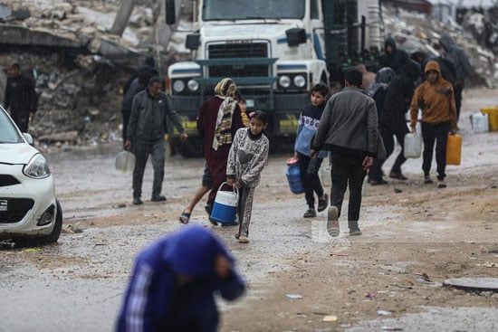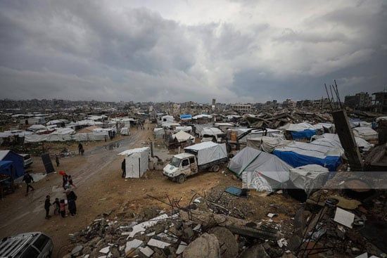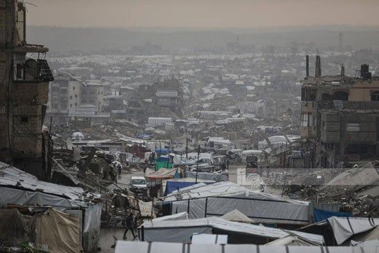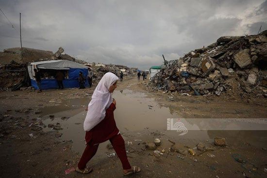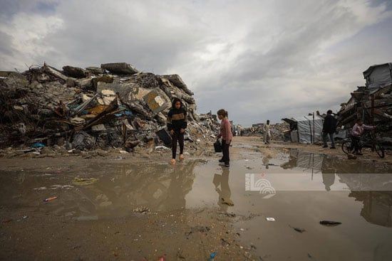 وسلط التقرير الضوء على الظروف القاسية التي يعيشها النازحون مع تساقط الأمطار، واضطرارهم للعيش في خيام هشة لا تقيهم قسوة الشتاء، في ظل اجتياح المنخفضات الجوية للقطاع، وما تسببه من فيضانات ومياه أمطار تزيد من معاناتهم الإنسانية يومًا بعد يوم.