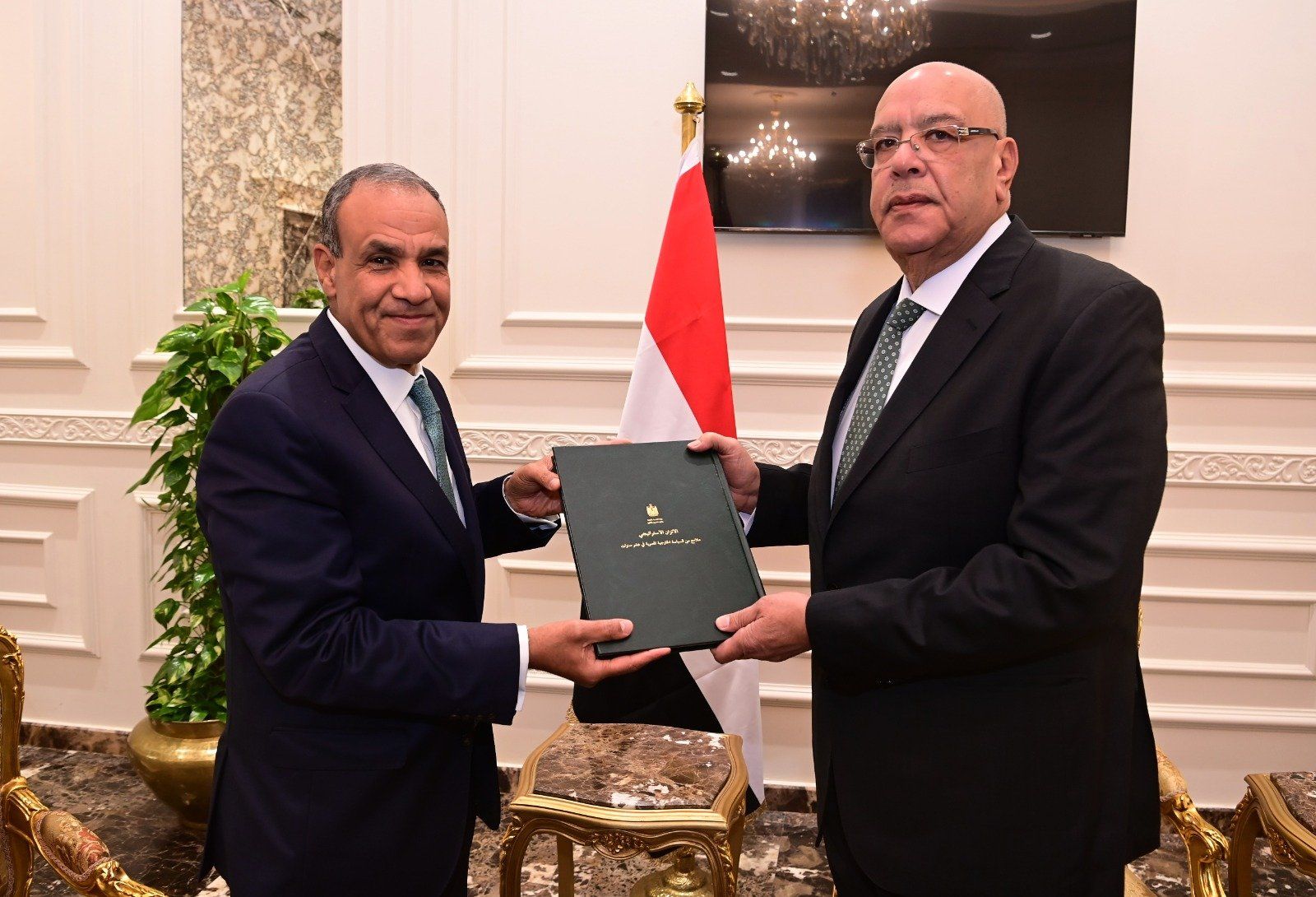 وخلال اللقاء، أهدى الدكتور بدر عبد العاطي، وزير الخارجية، للمستشار هشام بدوي كتاب «الاتزان الاستراتيجي»، الذي يتناول ملامح السياسة الخارجية المصرية وأبعادها ومحدداتها خلال السنوات العشر الماضية.