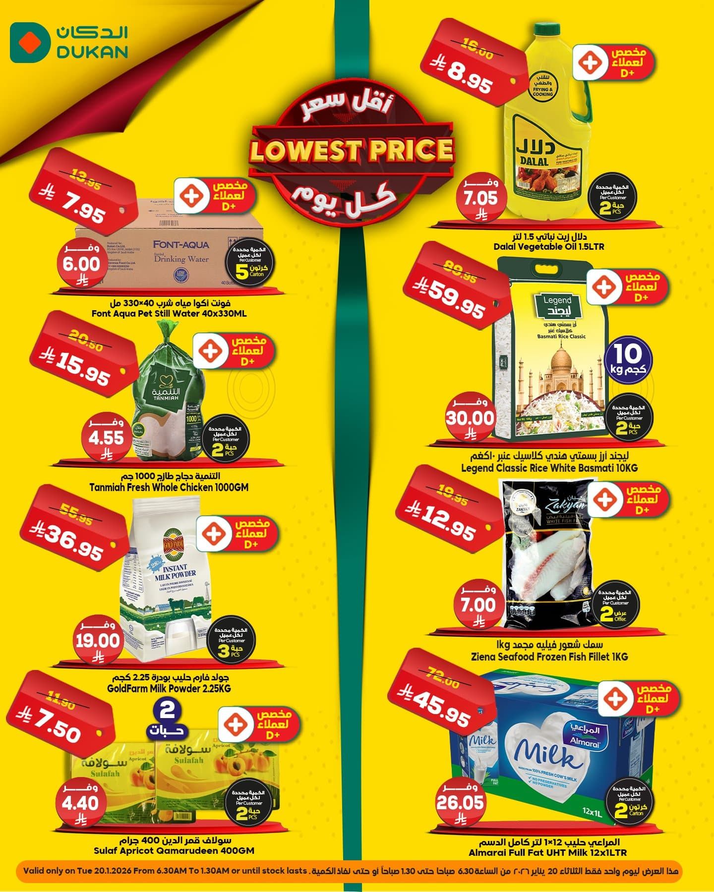 بنقدم ليكم احدث عروض الدكان جدة بتاريخ الثلاثاء 20 يناير 2026 الموافق 30 رجب 1447هـ و تحتوي علي تشكيلة من المنتجات الغذائية الاساسية منها الارز و زيوت الطعام و السكر و المجمدات و غيرها من المنتجات و بارخص الاسعار المناسبة للجميع تابعونا علي موقع عروض توداي ليصل اليكم كل جديد عن عروض السعودية