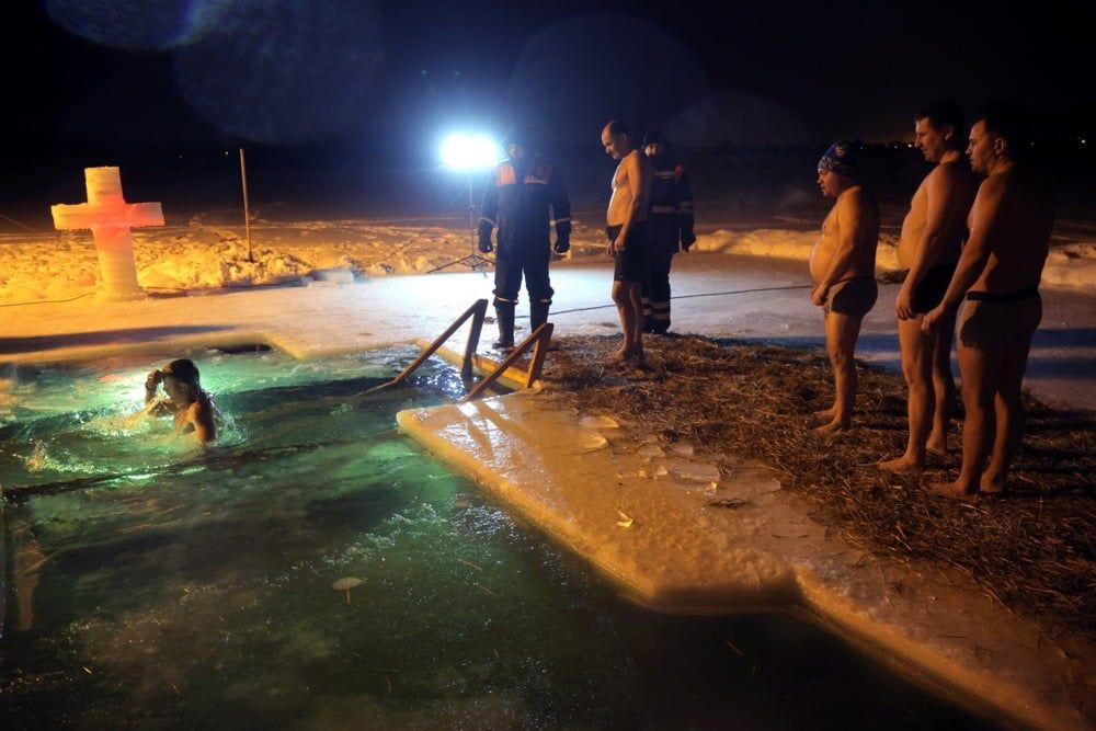 يغتسل المصلون الأرثوذكس في منطقة موسكو احتفالاً بعيد الغطاس