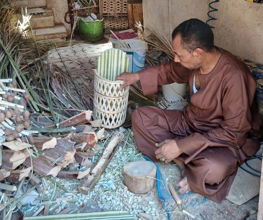 وأوضح سيد، أنه انتقل من الصناعات التقليدية للجريد، مثل صناعة الكراسي والأسرة، إلى ابتكار تحف فنية مثل الأباجورات، والستائر، وعلب المجوهرات، وصناعة مجسمات للسفن والسيارات كهدايا، ومجسمات صغيرة من جريد النخيل، مؤكدًا قدرته على تشكيل أي تصميم بالجريد.