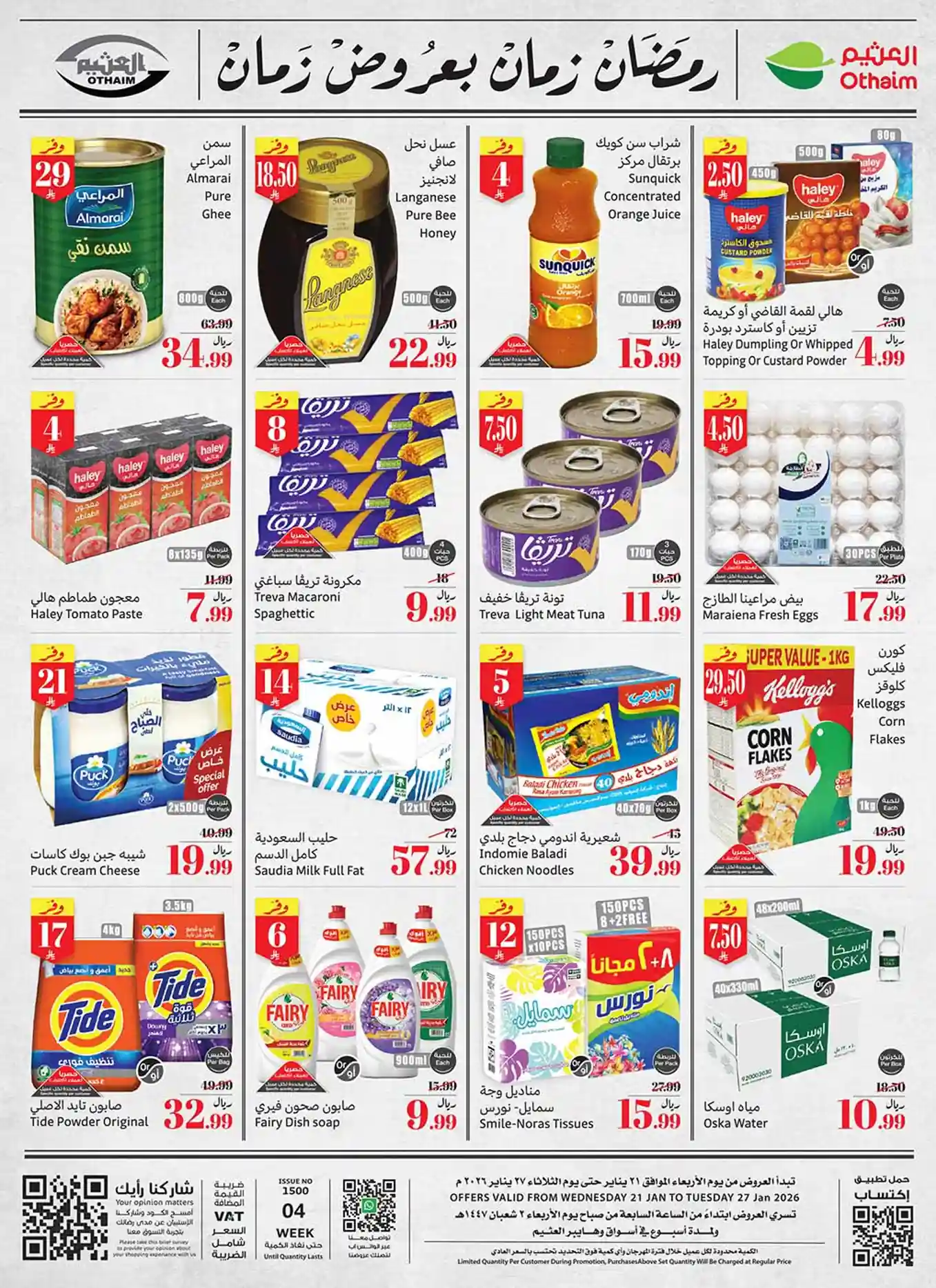 عروض نت تقدم لكم احدث عروض العثيم السعودية اليوم الجديدة فى صفحة واحدة – العروض الاسبوعية من اسواق العثيم هايبر ماركت – و ذلك من 21 يناير حتى 27 يناير 2026 او حتى نفاذ الكمية من اسواق عبد الله العثيم السعودية بجميع الفروع.